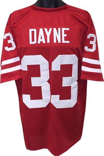 Ron Dayne was the starting running back all four years at Wisconsin and had 1,220 carries during his career. Over his four seasons, Dayne set the NCAA Division I-A rushing record for total yards in a career. He gained 1,863 yards as a freshman, 1,421 as a sophomore, 1,325 as a junior, and 1,834 as a senior. He finally broke the record in the final game of the 1999 season against Iowa. Dayne ended his career with 6,397 rushing yards. Dayne won the Heisman Trophy in 1999 as well as numerous other awards throughout college, including Big Ten Conference player of the year in 2000 and All-American placement in 1996, 1998 and 1999. This is a Ron Dayne Wisconsin Badgers unsigned Red unlicensed custom-prostyle jersey with twill stitched nameplate and numbers. perfect for autograph or to wear! Size XL