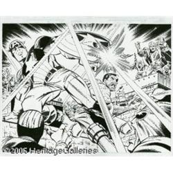 <B>Ron Frenz and Robert Jones - Captain America and Sgt. Fury Commissioned Illustration Original Art (undated).</B></I> Cap and Fury tackle a band of Hydra thugs in this stunning commissioned illustration by Ron Frenz "ala Kirby." The huge, heroic form of Cap and the dramatic "force" lines really pack a punch. Rendered on two sheets of 11" x 17" paper (taped at the back), this is the very definition of "suitable for framing." A stunning piece, in Excellent condition.