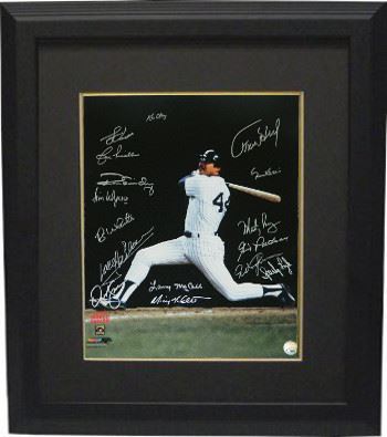 The 1977 World Series was the 83rd edition of Major League Baseball's championship series. The best-of-seven playoff was contested between the New York Yankees, champions of the American League and defending American League champions, and the Los Angeles Dodgers, champions of the National League (NL). The Yankees defeated the Dodgers, four games to two, to win the franchise's 21st World Series championship, their first since 1962, and the first under the ownership of George Steinbrenner. The Series was played between October 11 and 18, broadcast on ABC. During this Series, Reggie Jackson earned his nickname "Mr. October" for his heroics. This is a 1977 New York Yankees Team signed Yankees 1977 World Series Reggie Jackson action swinging 16x20 photo with 16 signatures. This photo has been signed by Ron Guidry, Sparky Lyle, Bucky Dent, Lou Piniella, Ed Figueroa, Larry Mccall, Gil Patterson, Fran Healy, Mickey Klutts, Marty Perez, Paul Blair, Gene Locklear, Roy White, Dave Kingman, Ken Clay and Jimmy Wynn. Item comes with a Schwartz Sports hologram and Certificate of Authenticity from Athlon Sports. Custom Black Mat and Premium Black Color Frame.