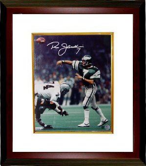 Ron Jaworski finished his 17 season career with 2,187 completions on 4,117 attempts for 28,190 yards, 179 touchdowns, and 164 interceptions. At one time he held the record for most consecutive starts by a quarterback with 116 having since been surpassed by Brett Favre and Peyton Manning. Ron Jaworski has hand autographed this Philadelphia Eagles 16x20 Photo from Super Bowl XV vs the Oakland Raiders. Custom White Mat and Mahogany Color Framed as shown. Mitchell Marketing Hologram and Certificate of Authenticity.