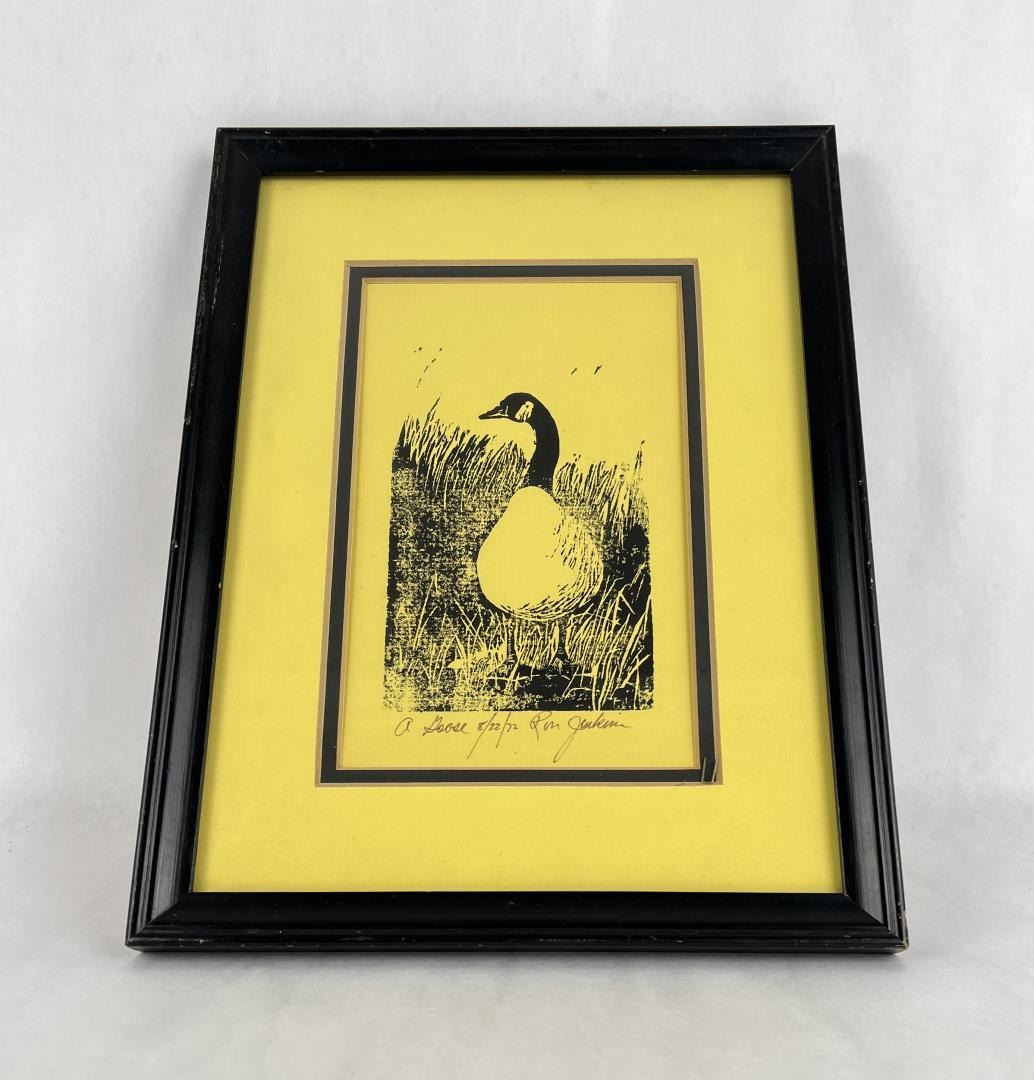 10" by 13" framed. Ron Jenkins was born on August 18, 1932 in Pawtucket, Rhode Island and then was raised in Carlisle, Pennsylvania. He attended the Philadelphia Museum School of Art throughout the academic year of 1954-1955, but increasing family responsibilities prompted him to drop his art education temporarily to go to work for a savings and loan association. It was a job he was to hold for ten years, but in the meantime he began a correspondence course in art that ran from 1958 to 1962. He works fast, and although he will tackle any subject, birds are his favorite; his work on them goes especially fast. In fact, he spent so little time, comparatively speaking, on the 1964 painting of canvasbacks that von the 1965-66 Federal Duck Stamp Competition that it gave him mildly embarassed pause; he had almost not submitted it at all. He has illustrated a number of stories for the Pennsylvania Game News and the Pennsylvania Angler. His work has also appeared in the National Geographic magazine and the Modern Game Breeding magazine. In 1980, he won the third annual Montana Bird Stamp Design contest with his Whistlers'or Barrows Goldenyes, which he produced in two medium which was that of a reproduction edition and a hand colored stone lithograph edition. In 1993, Ron was selected as the 1993 First of State for the Rhode Island Trout Conservation Stamp with his work of a brook trout during a Rhode Island caddis hatch.