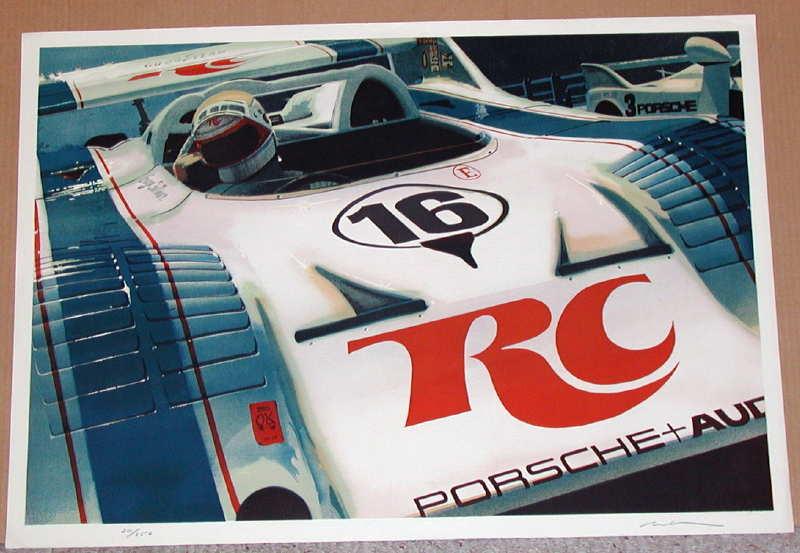 Hand drawn, stone lithograph created in 1974 by one of the original artists in the Super-Realist Movement. 24”x34” with borders. Signed and numbered in an edition of 250 on Arches paper. Subject is the RC Cola car at the 1973 Can-Am Race. Add domestic shipping of $20. International depending upon location.