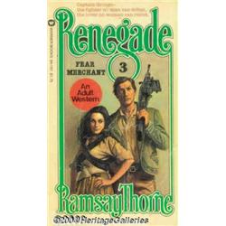<table><tr><td><TABLE cellSpacing=0 cellPadding=0 width="100%" bgColor=#000000 border=0><TBODY> <TR><TD width="100%"><TABLE cellSpacing=1 cellPadding=3 width="100%" border=0><TBODY><TR><TD width="100%" bgColor=#79735c><FONT face=arial color=#ffffff size=3><B>Description</B> </FONT></TD></TR><TR><TD width="100%" bgColor=#ffffff><FONT face=arial size=2><B>Ron Lesser - Original Paperback Cover Art (1980).</B></I><BR><B>Warner Books #94-161 Renegade #3 Fear Merchant</B></I> by Ramsay Thorne, part of the "Captain Gringo" series of adult westerns. Caption: "Captain Gringo - the fighter no man can defeat, the lover no woman can resist."<BR>Acrylic on board, image size approximately 22 x 17. Not signed.<BR>A color copy of the published paperback cover is included.<BR><BR>keywords: illustrator, illustration, action, adventure, western, vintage paperback <B>Estimate: $240-up</B> (2 items) </FONT></TD></TR></TBODY></TABLE></TD></TR></TBODY></TABLE><BR><!--<a name="PricesRealized"></a> <table width="100%" border="0" cellspacing="0" cellpadding="0" bgcolor="#000000"> <tr> <td width="100%"> <table width="100%" border="0" cellspacing="1" cellpadding="3"> <tr> <td width="100%" bgcolor="#79735C"> <a name="PR"> <font face="arial" size="3" color="#FFFFFF"> <b>Previous Prices from Heritage Auctions</b> </td> </tr> <tr> <td bgcolor="#F6F6ED"> No Prior Data Recorded </td> </tr> <tr> <td bgcolor="#FFFFFF"> <font face="arial" size="1""> PLEASE NOTE: All prices realized reflect the final hammer price PLUS the buyer's premium in auctions that charge a buyer's premium. Each item has a notation at the top of the listing indicating whether that lot included a buyer's premium. Example: A item that sells with a final hammer price of $100 and a 15% buyer's premium will display with a price realized of $115. All information listed is intended to be as accurate as possible, but errors are possible. Please use this guide carefully and inform us of any inaccuracies. </td> </tr> </table> </td> </tr> </table>