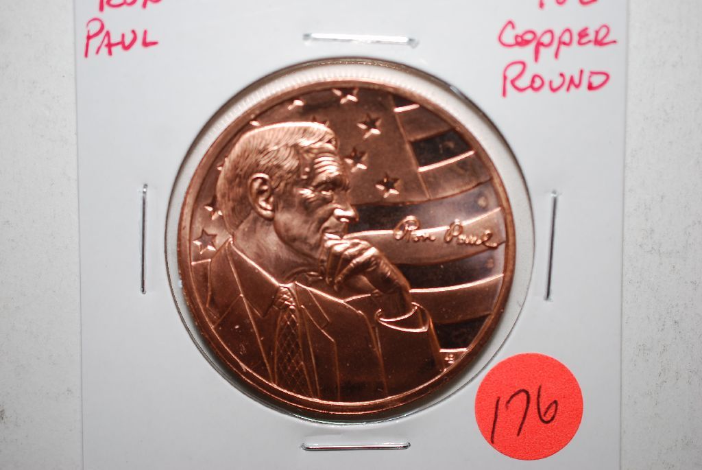 Ron Paul Copper Round; .999 Fine Copper 1 Oz.; EST. $3-5