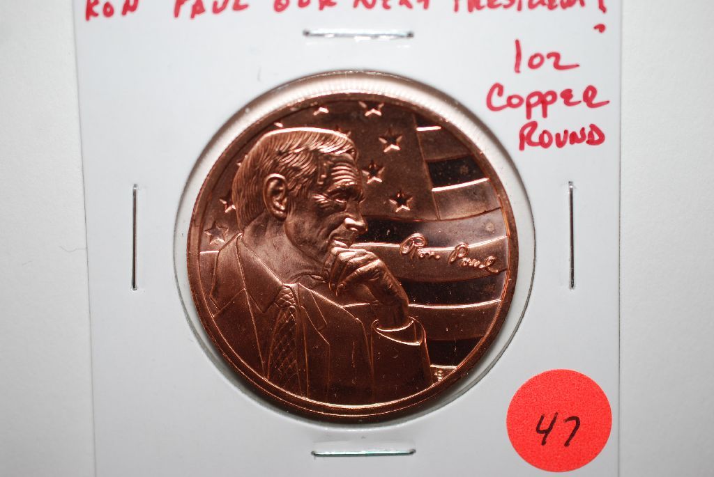Ron Paul Copper Round; "Our Next President"?; .999 Fine Copper 1 Oz.; EST. $3-5