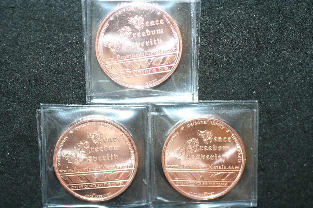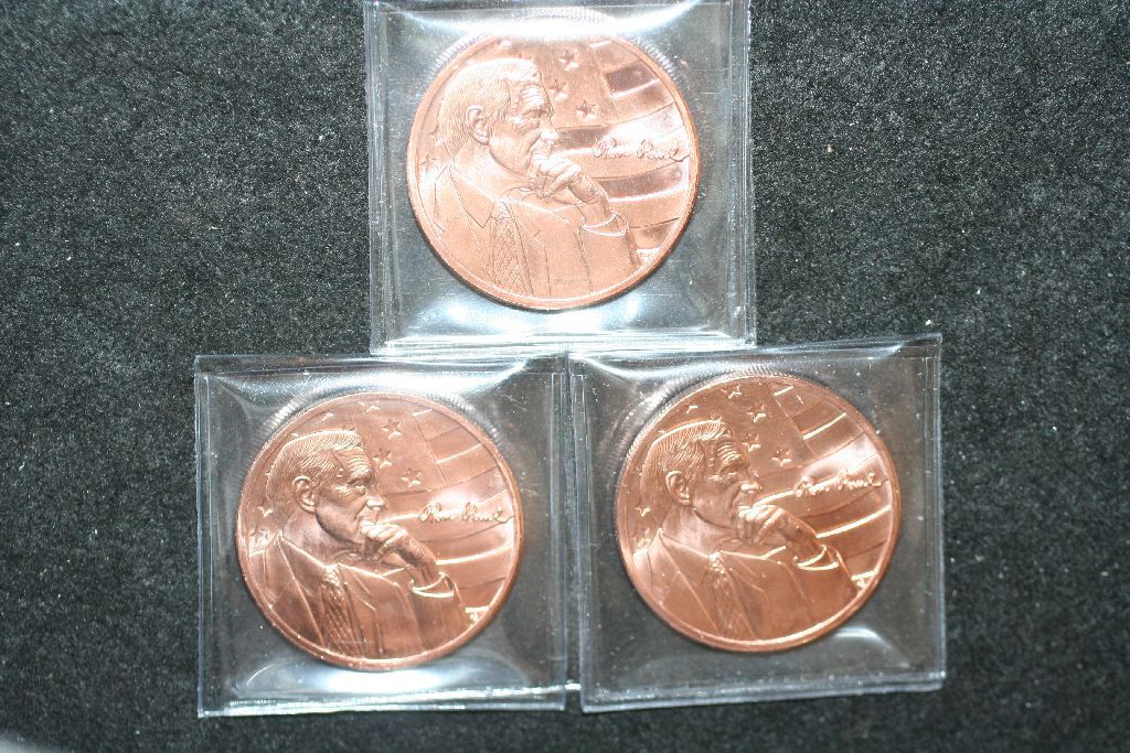Ron Paul Provident Metals Copper Round; .999 Fine Copper 1 Oz.; Lot of 3