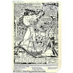 Ron Randall - Original Art for Conqueror of the Barren Earth #4, Complete 25-page Story, "The Conqueror" (DC, 1985). Originally a back-up series in Warlord, this futuristic/barbarian saga was given a four-issue trial run in its own title. Swords, science, beefy heroes, and strange creatures dominate these action-packed pages, which comprise the entire last issue of the miniseries. Ron Randall (inking his own pencils) turns in highly-detailed work that keeps the story moving. The pages measure 11" x 16.5" and are in excellent condition, with trimmed corners and light use of white-out. Important notice: Heritage usually auctions material at the rate of 200-250 lots per hour. On some occasions eBay Live bid software or the Internet may not be able to keep up with the pace of the auction. We recommend placing a realistic absentee bid now as insurance to avoid disappointment. Occasionally the auctioneer may eliminate or reject an eBay Live bid, and the auctioneer may also reopen a lot after the close of the eBay live bidding (usually because we missed an audience bid), and may reject your bid even if it shows you as the winning bidder. By bidding via eBay Live, you agree that Heritage may award the lot to another bidder at its sole discretion under the circumstances described above or any other reasonable circumstances. Since eBay bids are not shown to us until we open the lot on the floor, we treat those bids just like floor bids. In most cases the floor responds before the eBay bid is presented to us, due to Internet lag time, so for consistency we have made it a policy that floor bids are always considered first over tie eBay live bids. Also please note that all Heritage lots purchased through eBay Live carry a 20% Buyer's Premium. Please make sure you read the Terms and Conditions before you bid.