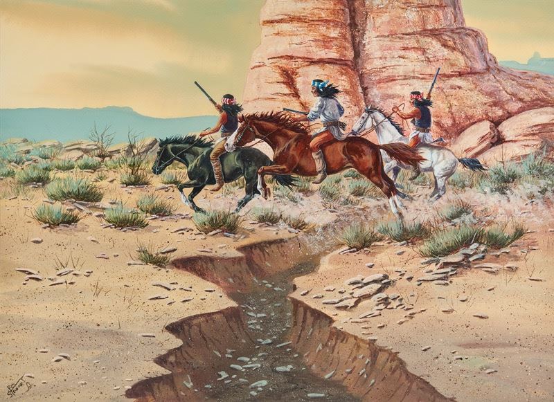 Auction lots may not be removed from Altermann Galleries during the auction. Shipment generally occurs within ten business days after payment has been received. Our preferred shipper is Pak Mail in Santa Fe, NM. Please provide a correct street address for our shipper. It will expedite your receipt of your purchase. Items not removed from our warehouse after 30 days will be subject to a storage charge.