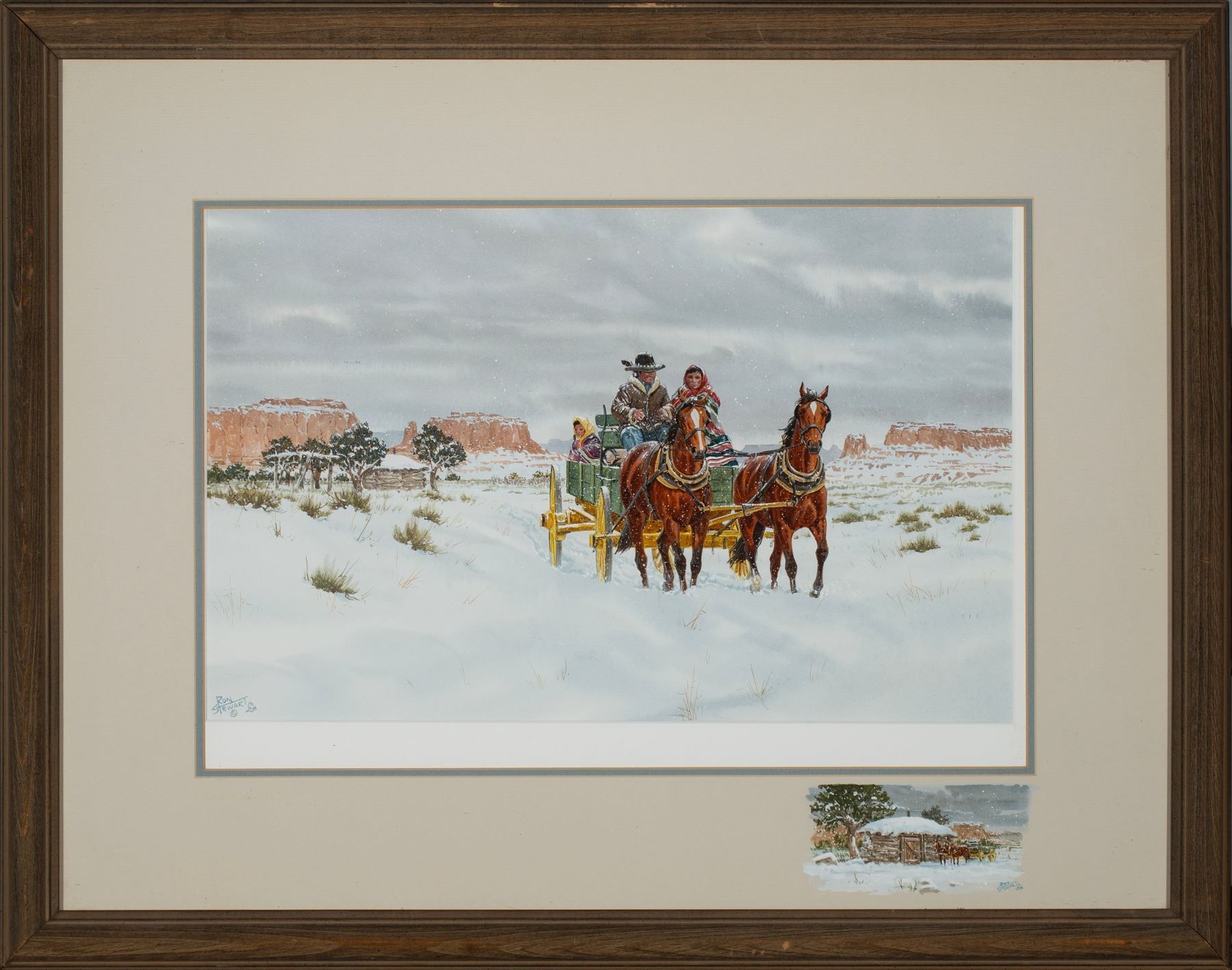 Ron Stewart (b. 1941), "Untitled, Native Americans in Wagon Snow Scene"