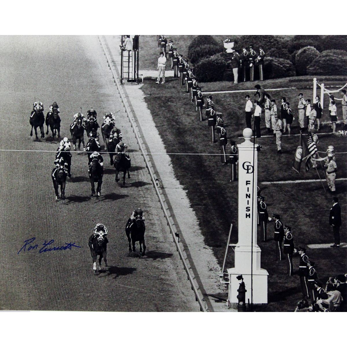 Ron Turcotte Finish Line Signed B/W 16x20 Photo