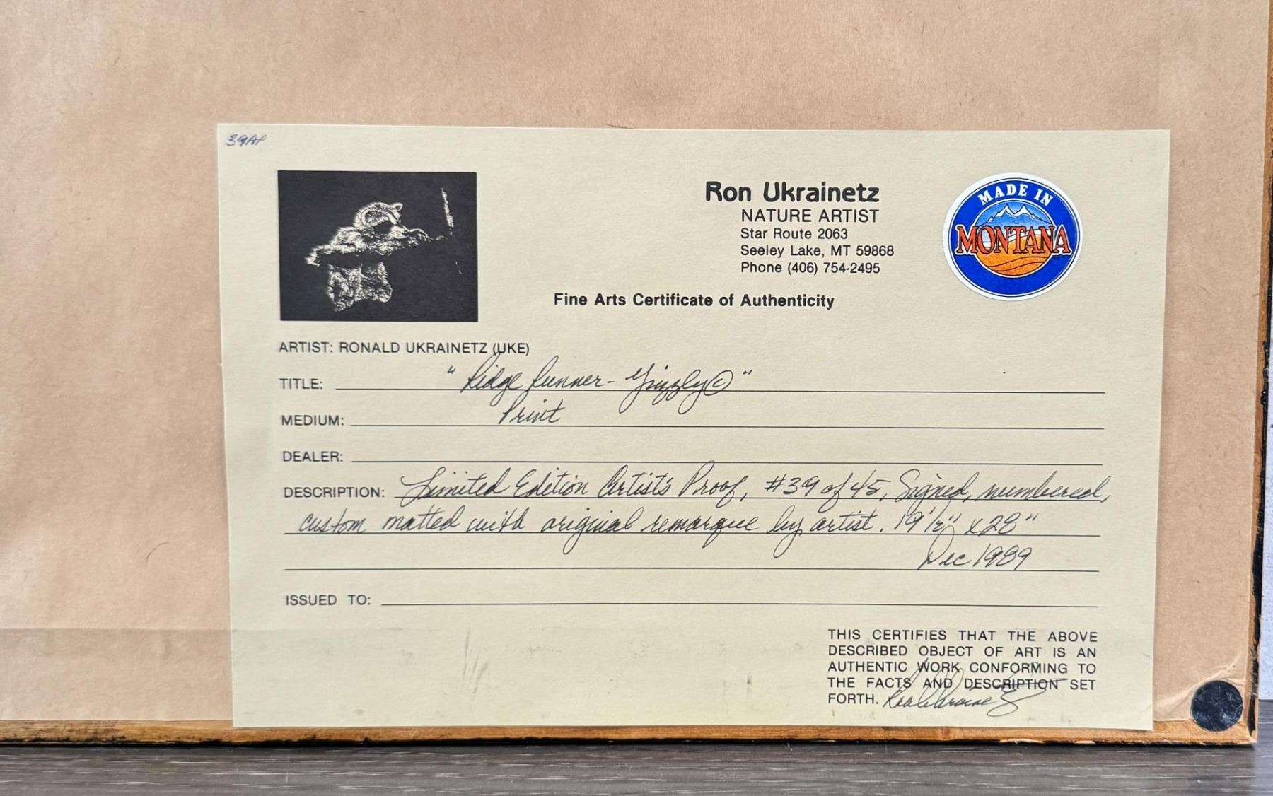Signed and Numbered with Drawing on Matte. 21 3/4" by 30 1/4" framed.