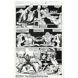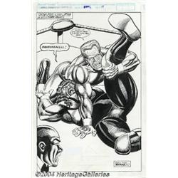 Ron Wilson and Mike DeCarlo - Original Art for WCW World Championship Wrestling #6, Group of 14 pages (Marvel, 1992). Included in this lot are: pages 1, 3, 4, 8 and 9 (a double-page splash), 11, 12, 15, 18, 20, 22, 25, 27, and 29. Ron Wilson captures all the excitement of big-time-wrasslin' in his action-packed art. Mike Decarlo's inks add turnbuckle-bustin' drama to the story. The pages features such WCW characters as Sting, Cactus Jack, Rick Rude, Johnny B. Bad and Jim Ross. The overall art paper measures 11.25 " x17", with an image area of 10" x 15". The art is in excellent condition and the pages are very clean. Important notice: Heritage usually auctions material at the rate of 200-250 lots per hour. On some occasions eBay Live bid software or the Internet may not be able to keep up with the pace of the auction. We recommend placing a realistic absentee bid now as insurance to avoid disappointment. Occasionally the auctioneer may eliminate or reject an eBay Live bid, and the auctioneer may also reopen a lot after the close of the eBay live bidding (usually because we missed an audience bid), and may reject your bid even if it shows you as the winning bidder. By bidding via eBay Live, you agree that Heritage may award the lot to another bidder at its sole discretion under the circumstances described above or any other reasonable circumstances. Since eBay bids are not shown to us until we open the lot on the floor, we treat those bids just like floor bids. In most cases the floor responds before the eBay bid is presented to us, due to Internet lag time, so for consistency we have made it a policy that floor bids are always considered first over tie eBay live bids. Also please note that all Heritage lots purchased through eBay Live carry a 20% Buyer's Premium. Please make sure you read the Terms and Conditions before you bid.