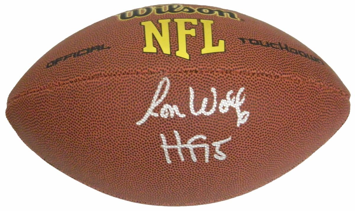 Ron Wolf signed Wilson Touchdown NFL full size football with 'HF 15' inscription. Item comes with a Schwartz Sports Memorabilia tamper-proof numbered hologram and Certificate of Authenticity which can be verified online.