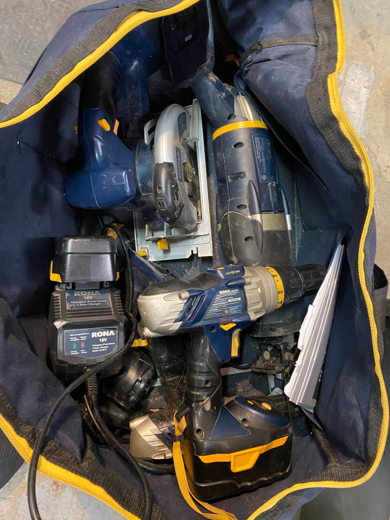 Rona cordless tools with charger and batteries