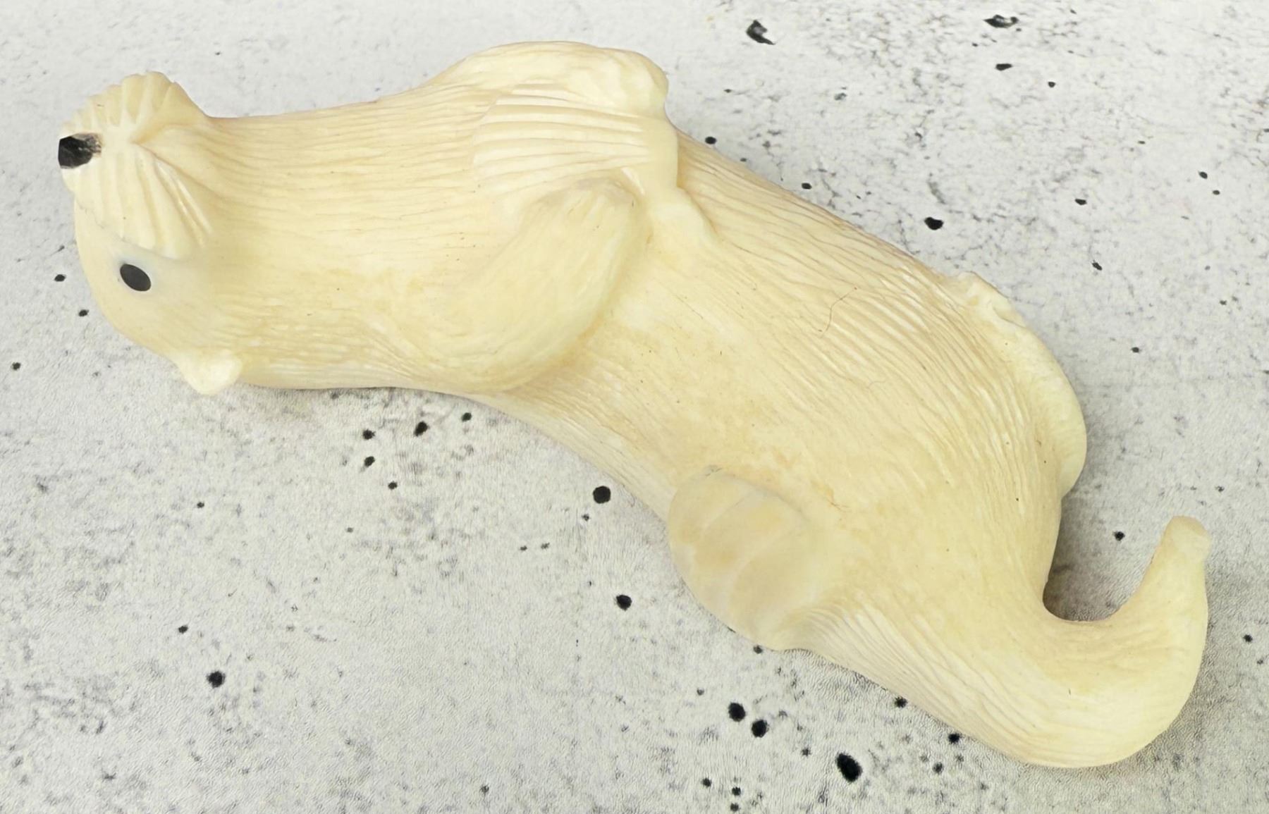 Ron Qay. Carved Walrus Material. 2 3/4" long, 1 1/4" tall, 3/4" wide.