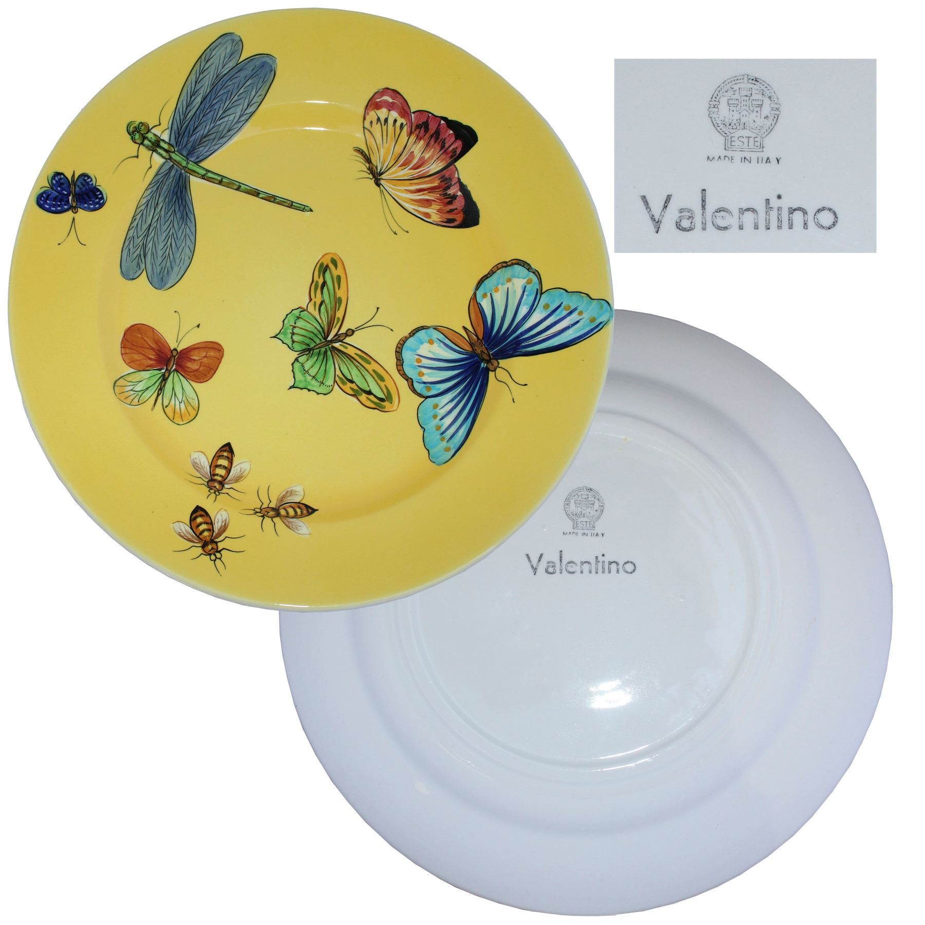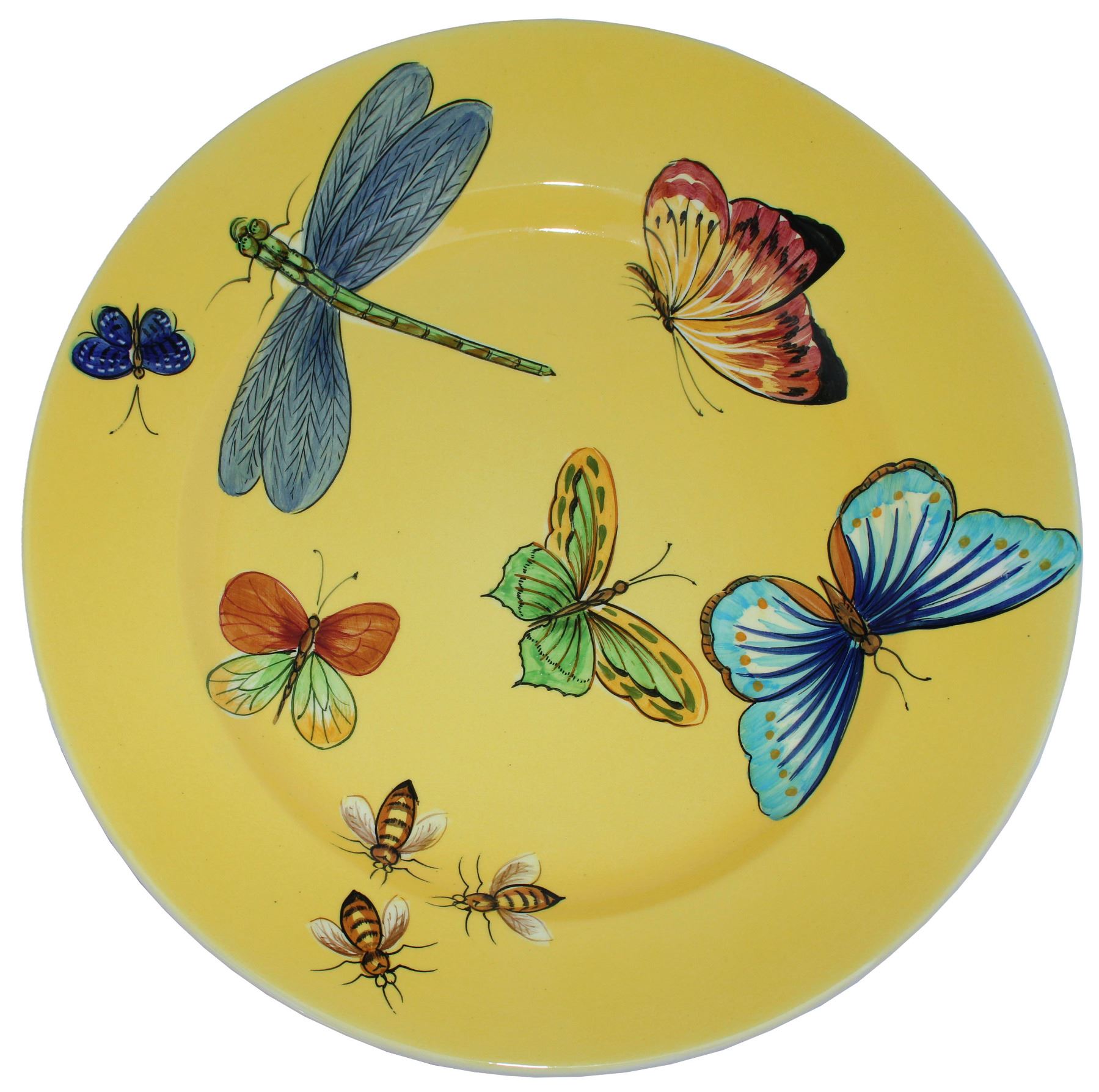 Bright decorative plate from the personal collection of President Ronald and Nancy Reagan, owned and used by them at their Bel Air, California home. Ceramic plate designed by Valentino and made in Este, Italy features an array of butterflies and bumble bees. Measures 10.5'' in diameter. Originally sold at Christie's in New York, and with Christie's lotting sticker. Near fine condition.