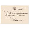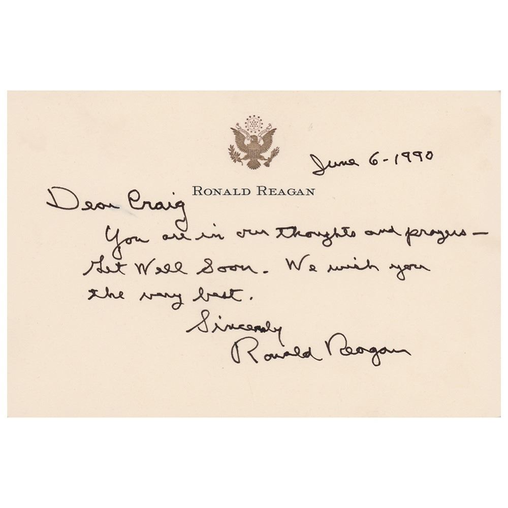 ANS, one page, 6.25 x 4.25, personal stationery card letterhead, June 6, 1990. Handwritten note to "Craig," in full: "You are in our thoughts and prayers—get well soon. We wish you the very best." In fine condition, with a slight brush to the salutation.