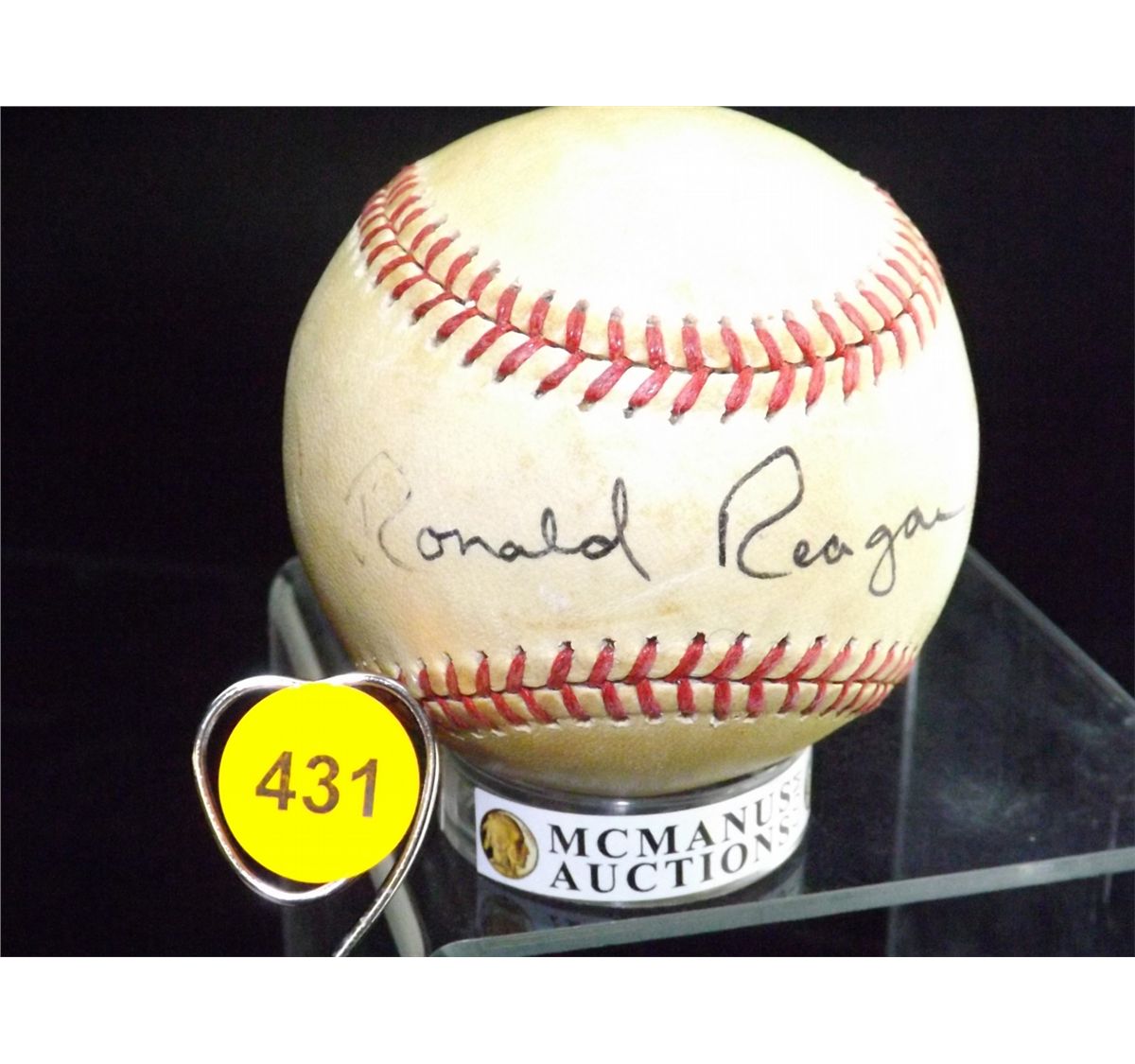 Ronald Reagan Autographed Baseball. Rawlings Official National League Ball. Appraised or estimated retail value $6000. COA by Christopher Morales. All Sales Final. Please see terms and conditions of auction.