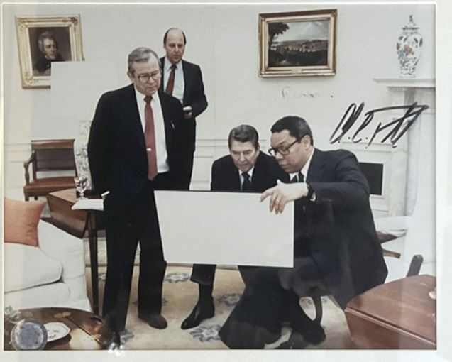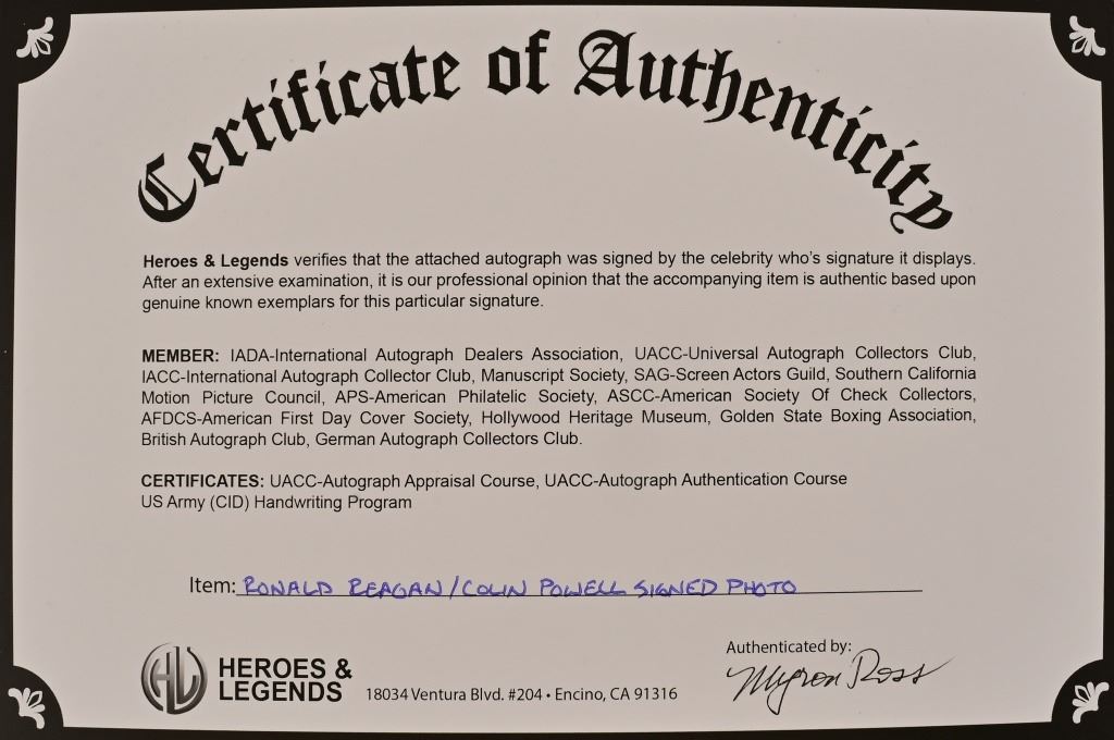 Ronald Reagan/ Colin Powell signed photo. GFA authenticated. 12x15 inches framed. PD230