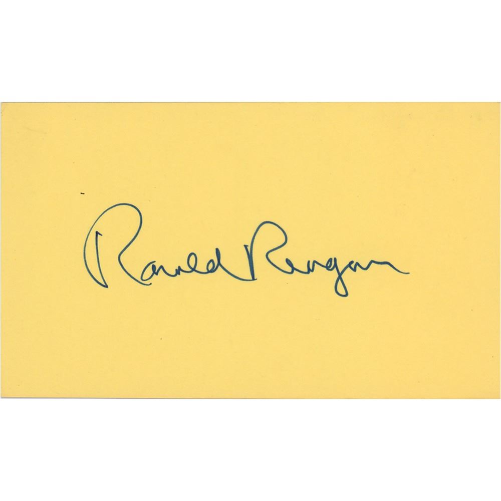 Felt tip signature, "Ronald Reagan,” on a yellow 5 x 3 card. In very fine condition.