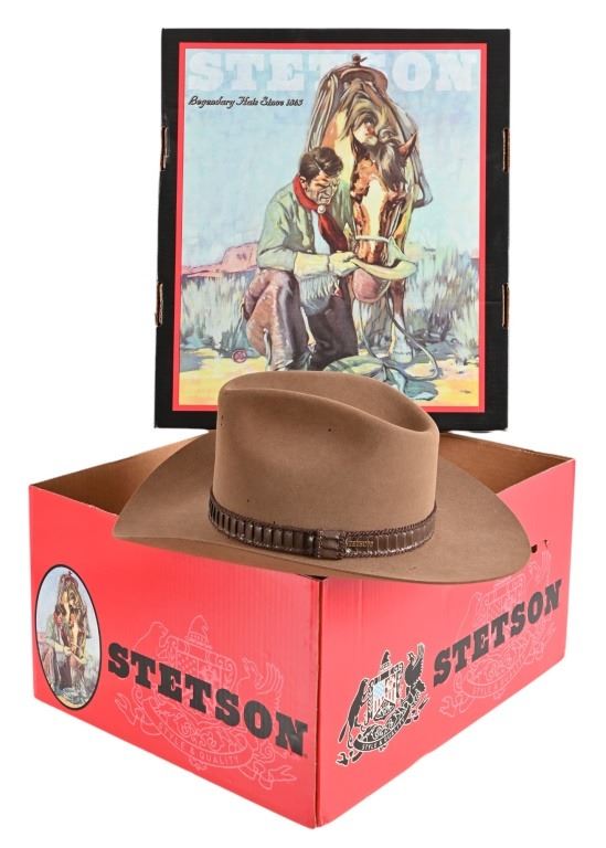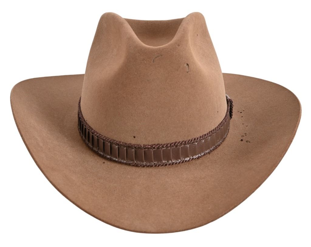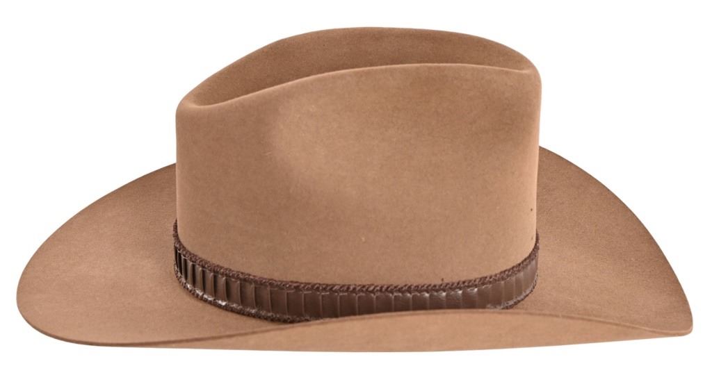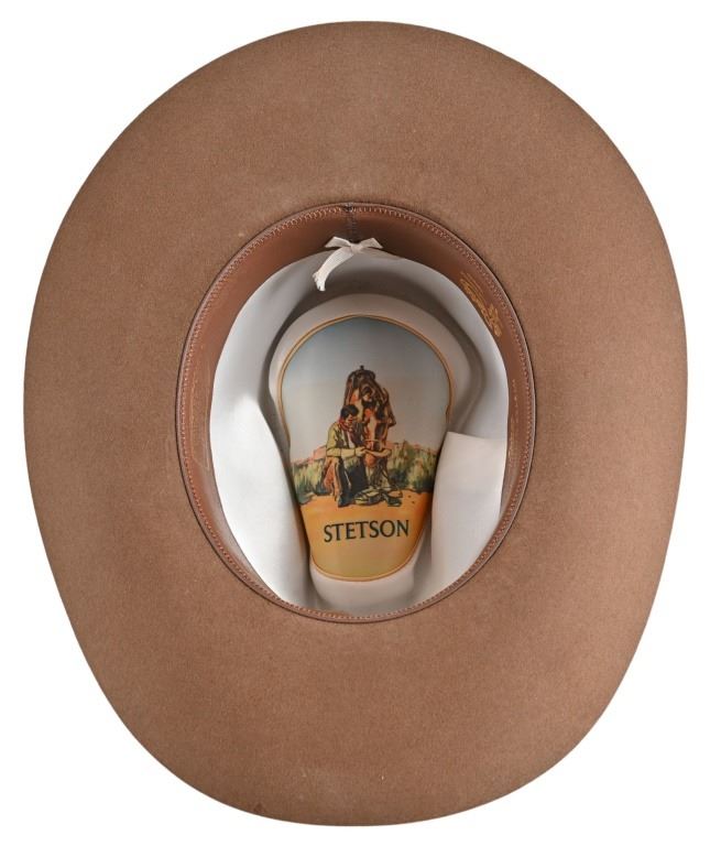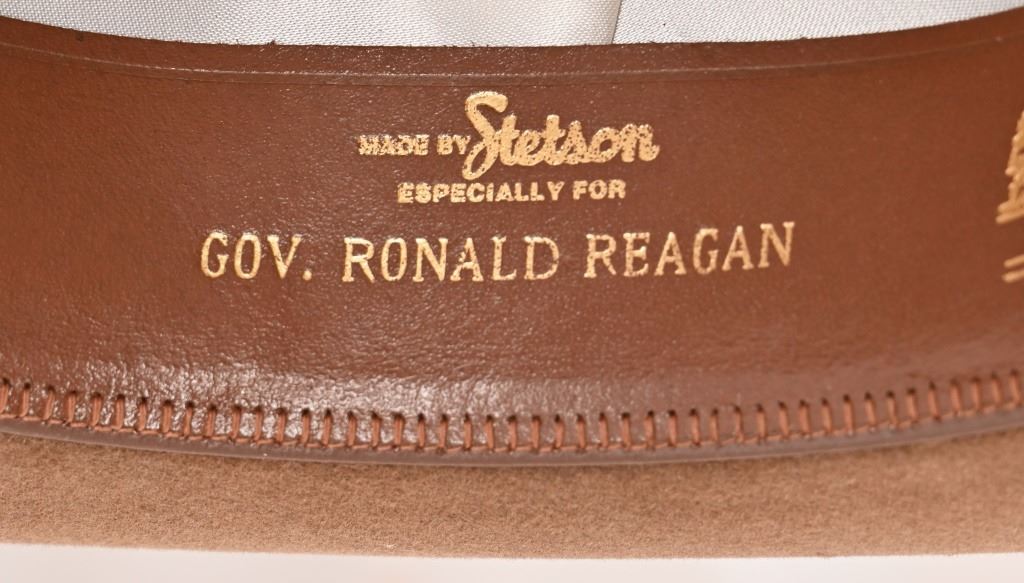 Sweatband marked "Made by Stetson, especially for Gov. Ronald Reagan", with Nudie's Rodeo Tailors in gold. Size is approximately 6 7/8. Includes auction purchase paperwork