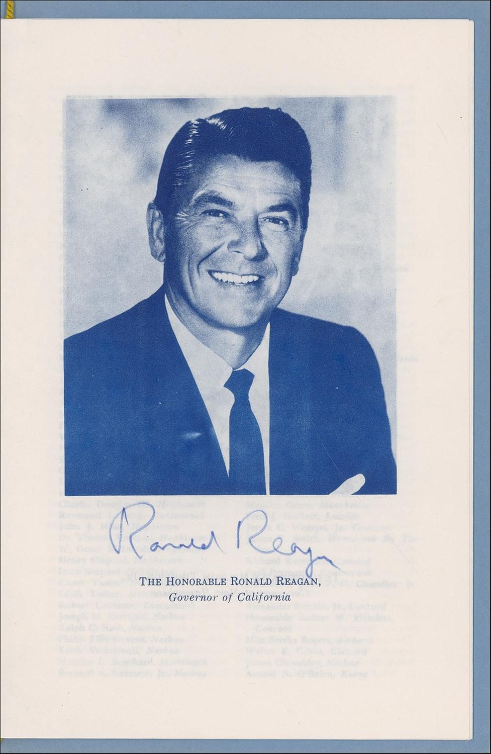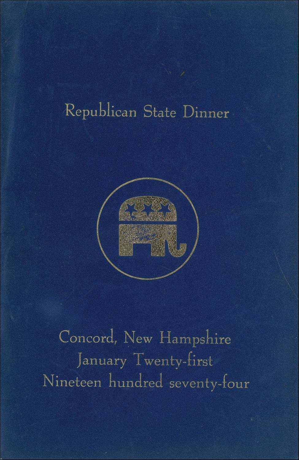 Program from the New Hampshire Republican State Dinner, held on January 21, 1974, in Concord, 6.25 x 9.5, signed beneath his image in blue felt tip. In fine condition.