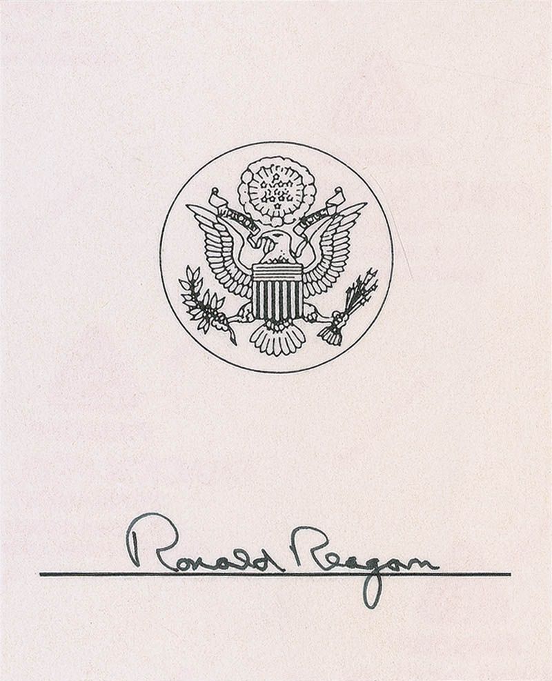 Off-white unused bookplate featuring the presidential seal, 3.5 x 4.5, signed at the bottom in black felt tip. In very fine condition.