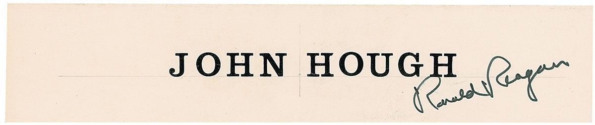 Place card for John Hough, 10 x 2, signed on the front in black felt tip. In fine condition.