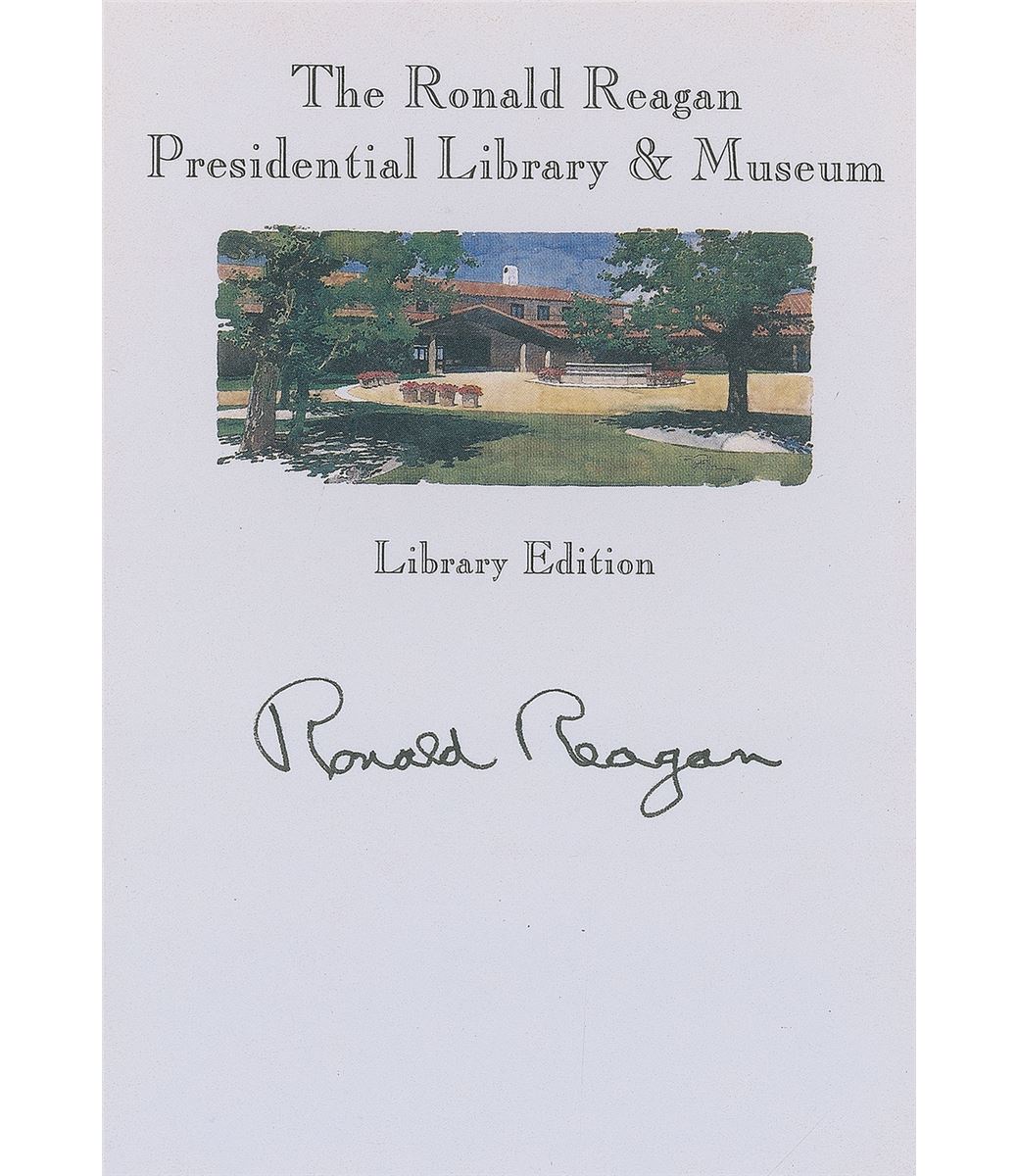 White unused 3.5 x 5 library edition bookplate depicting the Ronald Reagan Presidential Library & Museum, signed in black ink. In very fine condition.