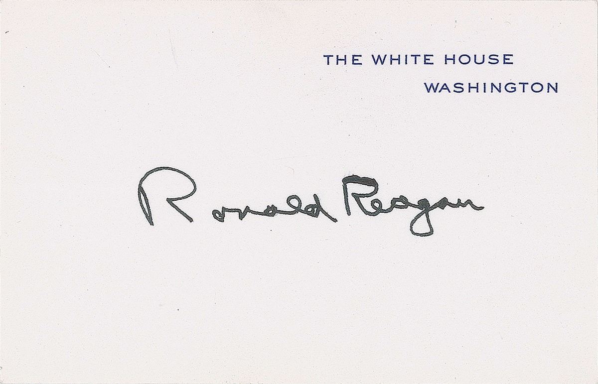 White House card signed in black ink by Reagan. In fine condition.