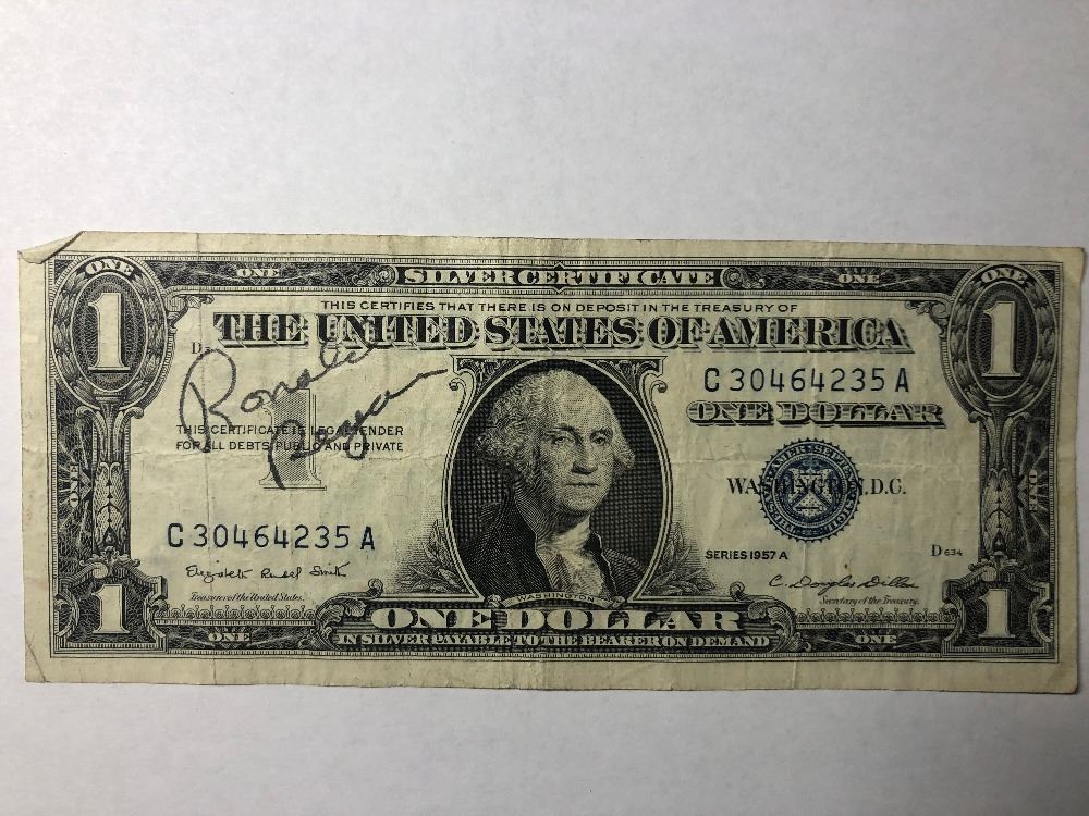 Signed by Ronald Reagan This item comes in a hard acrylic currency display case