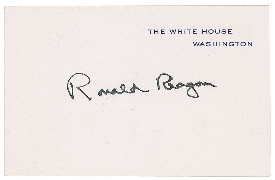 White House card signed in bold black ink by Ronald Reagan. In fine condition. Accompanied by a full letter of authenticity from PSA/DNA.