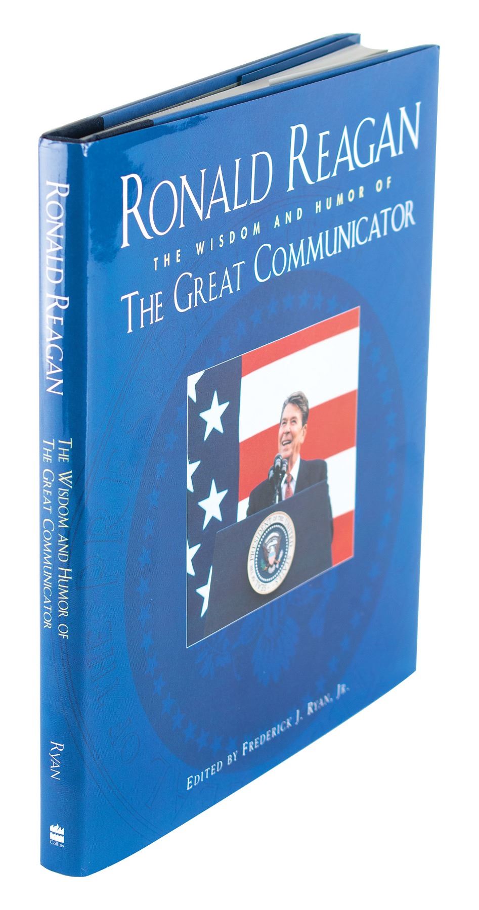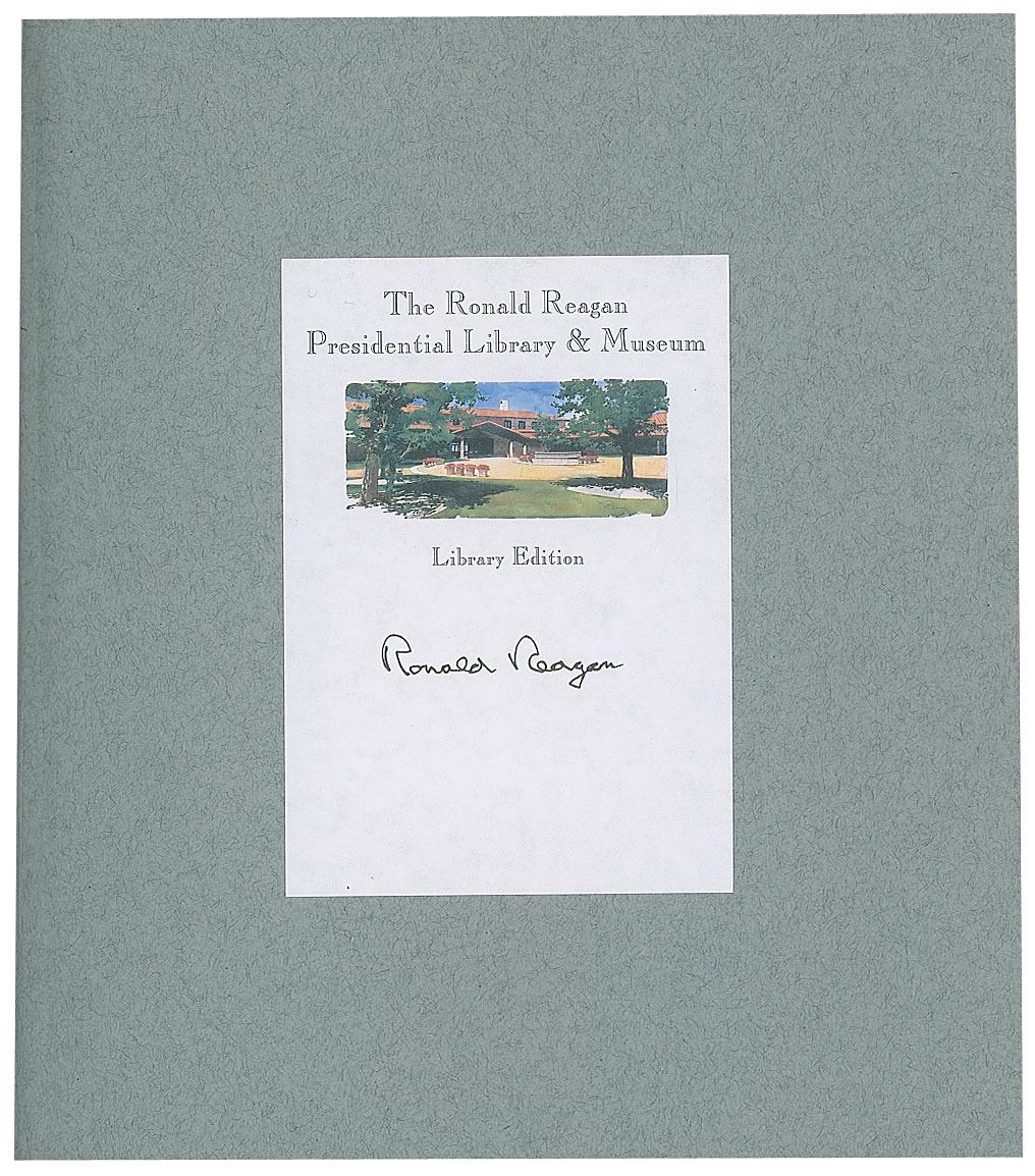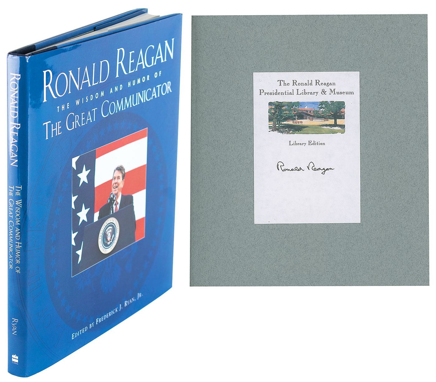 Signed book: Ronald Reagan: The Wisdom and Humor of the Great Communicator. San Francisco, CA: Collins Publishers, 1995. Hardcover with dust jacket, 8.25 x 9.25, 157 pages. Signed by Ronald Reagan in black ink on a bookplate affixed to the first free end page. In fine condition.