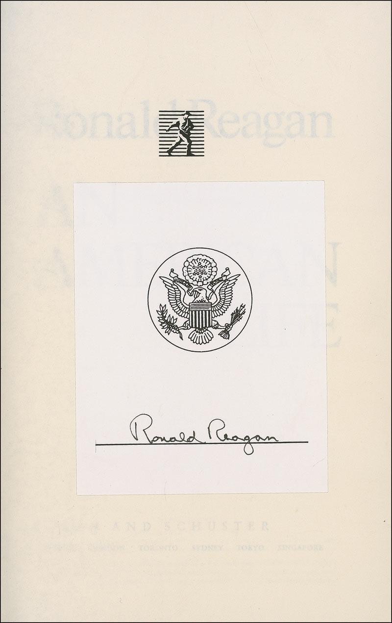 Signed book: An American Life. First edition, first printing. NY: Simon & Schuster, 1990. Hardcover with dustjacket, 6.5 x 9.5, 748 pages. Signed in black ink on a bookplate affixed to the second free end page. In fine condition. The dustjacket shows some scattered light wear, surface marks, creases, and a small tear to head of spine.