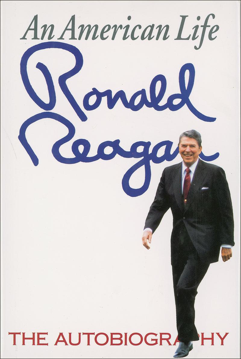 Signed book: An American Life. Later printing. NY: Simon & Schuster, 1990. Hardcover with dustjacket, 6.5 x 9.5, 748 pages. Signed in black felt tip, “Ronald Reagan,” on An American Life bookplate affixed to the second free-end page. In fine condition.
