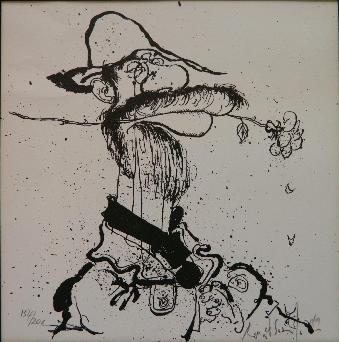 Ronald Searle (British 1920-2011)- ''Hommage a Toulouse-Lautrec''- lithograph, 1969, signed, dated and numbered 134/200 in pencil, good condition. 9 x 9''