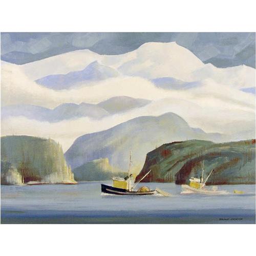 Canadian BCSA [1902-1992] NORTH COAST MISTS oil on board 18 x 24 in. (45.7 x 61 cm) signed & titled