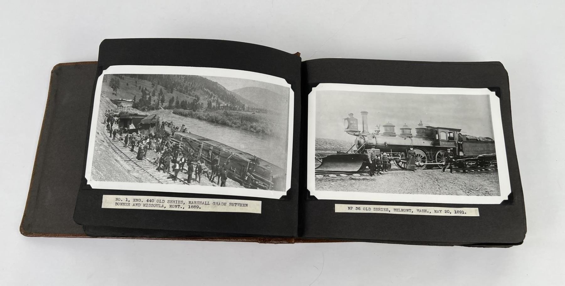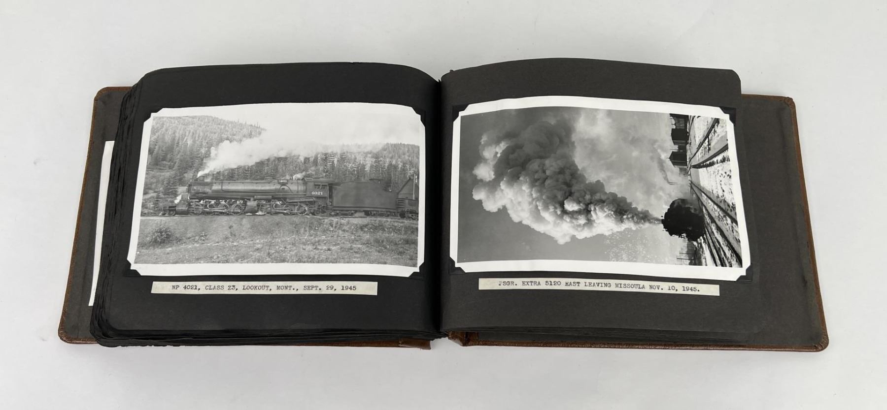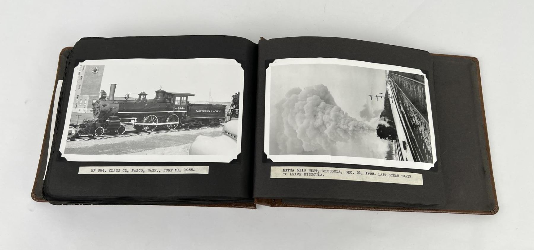 Ronald V. Nixon (1916-1989) assembled a unique historical railroad photograph print record of the pivotal role played by railroads in the development of the United States. Nixon's copy photos captured images of old locomotives, trestles, wrecks, and other railroad activity in Montana, Idaho, eastern Washington, and Oregon. The Museum of the Rockies in Bozeman has a large archive of his photo collection. This album holds 98 Images. All Taken by Ronald Nixon.