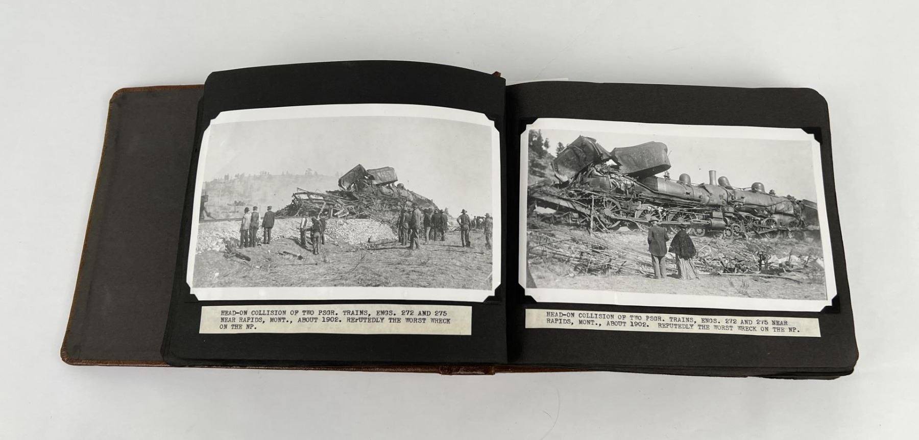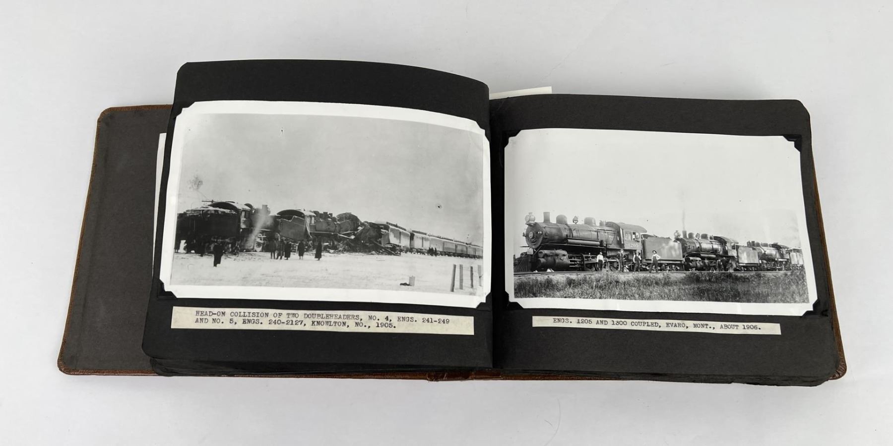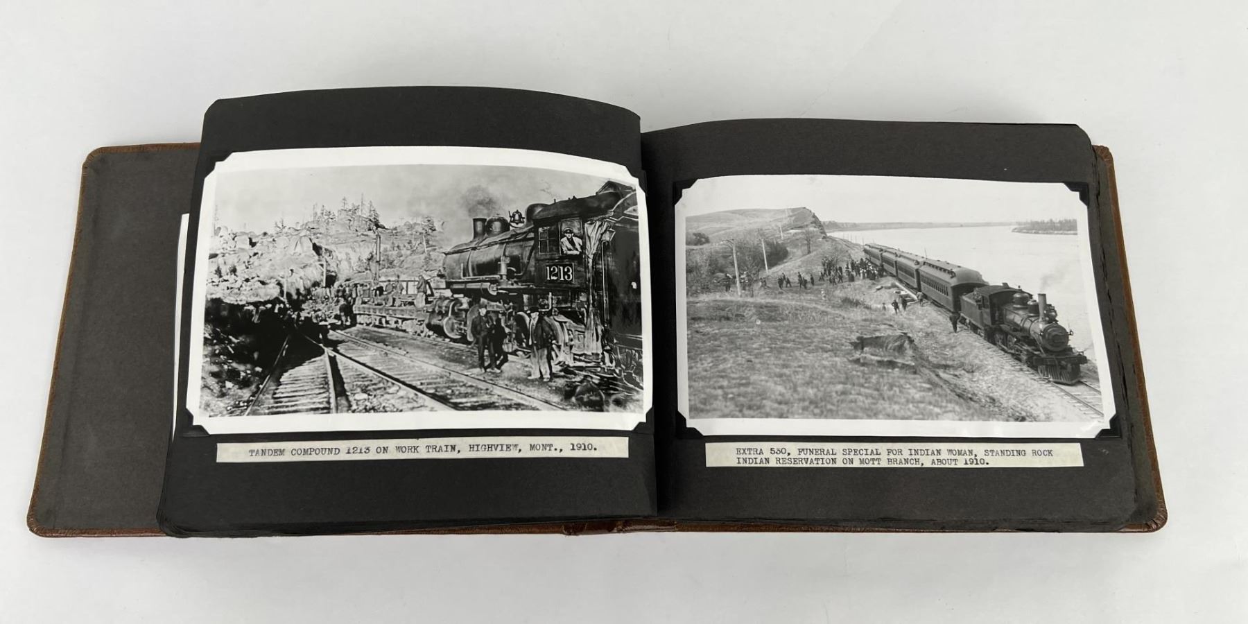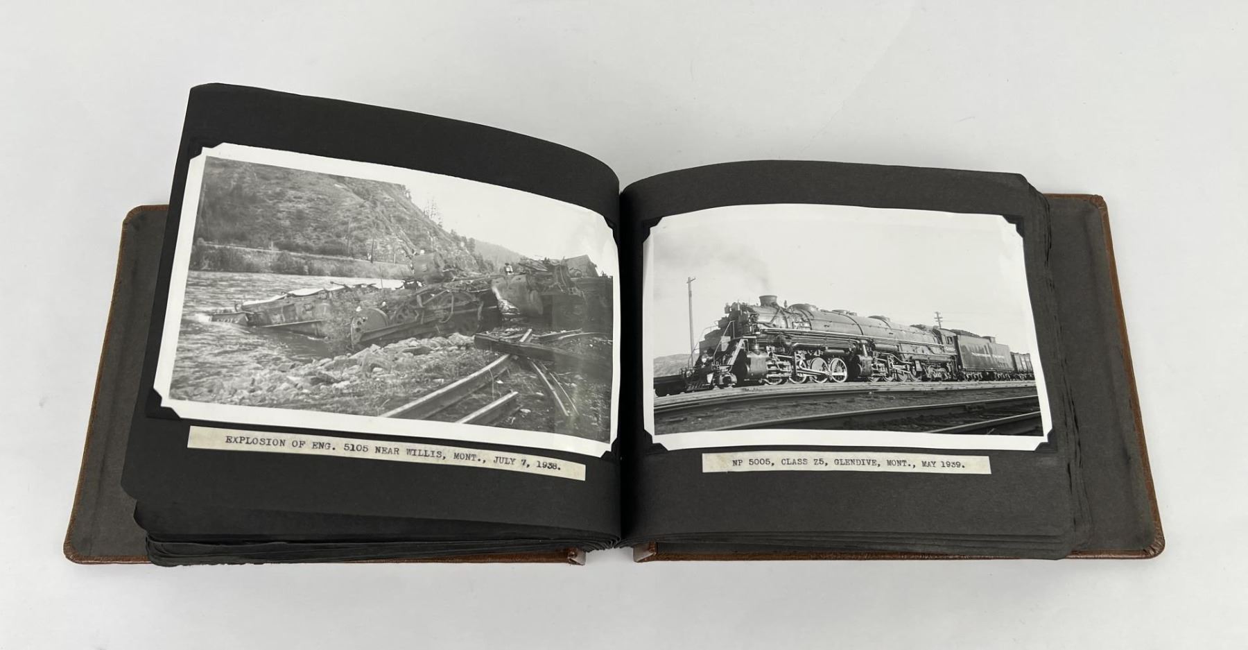 Ronald V. Nixon (1916-1989) assembled a unique historical railroad photograph print record of the pivotal role played by railroads in the development of the United States. Nixon's copy photos captured images of old locomotives, trestles, wrecks, and other railroad activity in Montana, Idaho, eastern Washington, and Oregon. The Museum of the Rockies in Bozeman has a large archive of his photo collection. This album holds 98 Images. All Taken by Ronald Nixon.