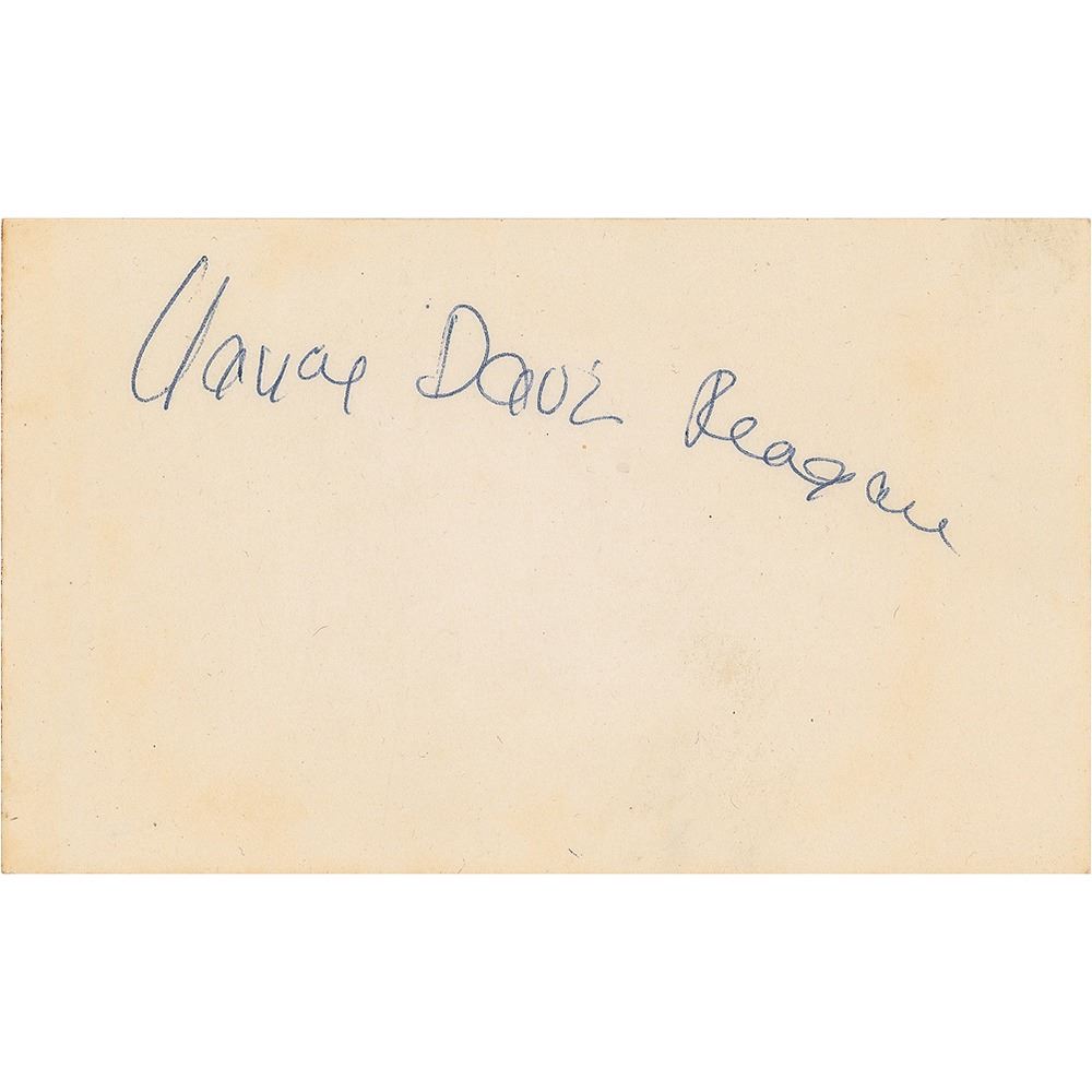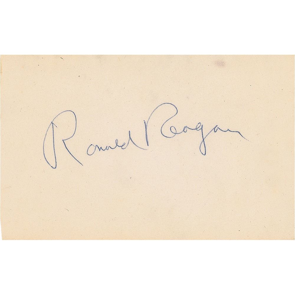 Vintage ballpoint signatures, "Ronald Reagan" and "Nancy Davis Reagan," on individual off-white 4.75 x 3 album pages. In fine condition, with two light creases to the Nancy slip.