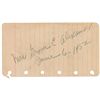 62. All Lots sold by RR Auction are accompanied by a Certificate of Authenticity. On any lot presented with a Certificate of Authenticity (“COA”) issued by RR Auction, that warranty insures only to the original Bidder (as shown in Auctioneer’s records) “Bidder”. Bidder may not transfer the rights afforded under the COA and it is null and void when Bidder transfers or attempts to transfer the lot. The COA warranty is valid from date of the auction in which Bidder was awarded the lot to five (5) years after its purchase. The COA warranty is valid as to its attribution to the person or entity described or to the lot’s usage. The Bidder as well as their heirs, successors and assigns is also given an unconditional lifetime guaranteed that allows the present owner of any lot purchased through RR Auction the right to consign with RR Auction. When the lot is accompanied by a Certificate of Authenticity (or its equivalent) from a third-party authentication provider, buyer has no right of return. On lots not accompanied by third-party authentication or under extremely limited circumstances not including authenticity (e.g. gross cataloging error), a Bidder who did not bid from the floor may request Auctioneer to evaluate voiding a sale; such request must be made in writing detailing the alleged gross error, and submission of the lot to Auctioneer must be pre-approved by Auctioneer. A Bidder must notify the appropriate department head in writing of the Bidder’s request within three (3) days of the non-floor bidder’s receipt of the lot. Any lot that is to be evaluated for return must be received at the office of RR Auction within 35 days after Auction. AFTER THAT 35 DAY PERIOD, NO LOT MAY BE RETURNED FOR ANY REASONS. Lots returned must be in the same condition as when sold and must include any Certificate of Authenticity. If a bidder wishes to challenge the Letter of Authenticity within the five (5) year warranty period, Bidder must present with the claim, authoritative written evidence that the lot is not authentic as determined by a known expert in the field. If Auctioneer concurs that the lot is not as represented, Bidder shall be refunded their purchase price. If the Auctioneer denies the claim, the Bidder may file the dispute with the American Arbitration Association with locale in Boston Massachusetts, Suffolk County, before a single selected Arbitrator selected by the American Arbitration Association. The American Arbitration Association arbitration shall be conducted under the provisions of the Federal Arbitration Act and the Bidder consents to jurisdiction in The Commonwealth of Massachusetts. The challenge to Authenticity must be brought within one (1) year if the Auctioneer denies the claim. After one (1) year, the Bidder hereby releases and discharges RR Auction from any and all legal, equitable, administrative and/or other claims, counterclaims, demands, setoffs, defenses, accounts, suits, debts, dues, actions, causes of action, proceedings, arbitrations, damages, executions, judgments, findings, controversies and disputes, whether known or unknown or suspected or unsuspected, whether in law or equity, that the Bidder have or may have had against RR Auction arising from or relating to any claim whatsoever. Specifically, the COA provided by RR Auction, does not provide for incidental or consequential damages or other indirect damages. Any lot sold with a certificate of authenticity or other warranty from an entity other than Auctioneer is subject to such issuing entity’s rules and such conditions are the sole remedy afforded to Bidder. For information as to third party authentication warranties the bidder is directed to contact RR Auction.
