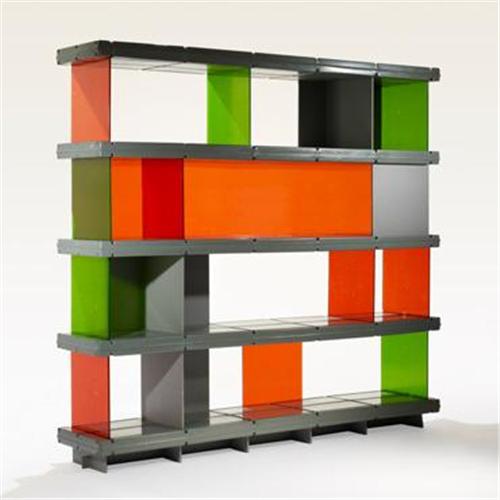 Ronan and Erwan Bouroullec<BR>Charlotte shelving system<BR>Neotu<BR>France, 1999<BR>plastic, glass, lacquered multi-density fiberboard<BR>73.25 w x 16 d x 69 h inches<BR>This example is from the edition of ten.<BR><BR>Condition of the item is not included in this description. Condition reports are available from Wright upon request. Wright strongly recommends that you review a condition report for each item on which you plan to bid.