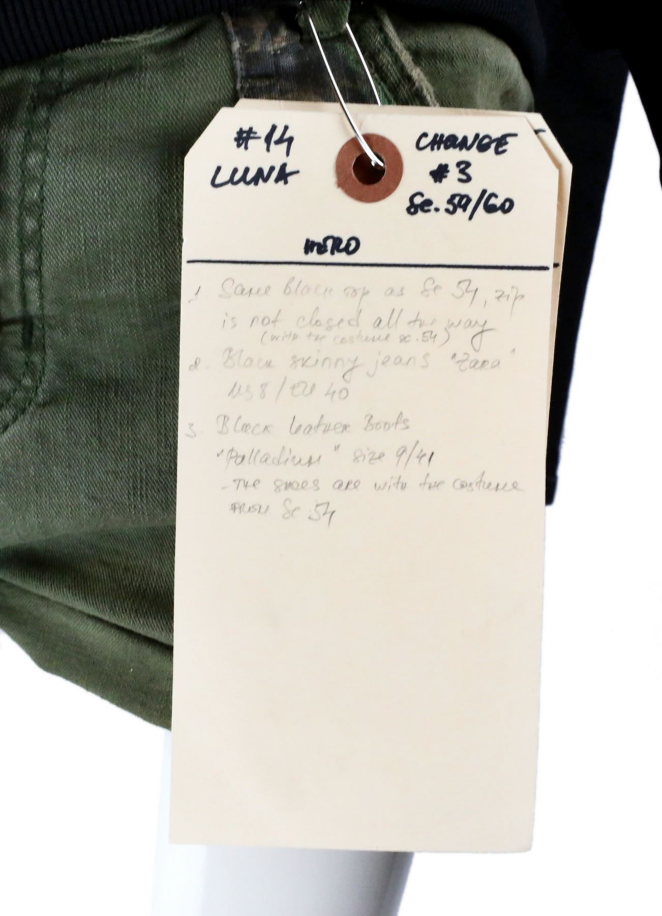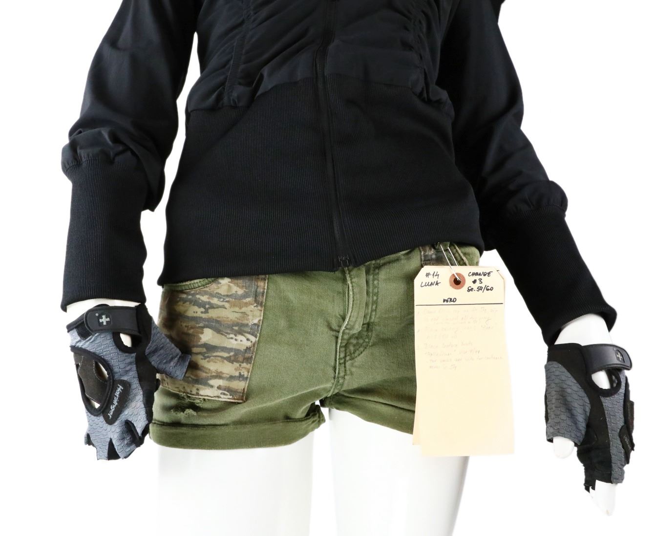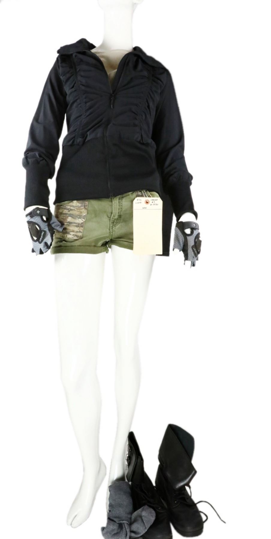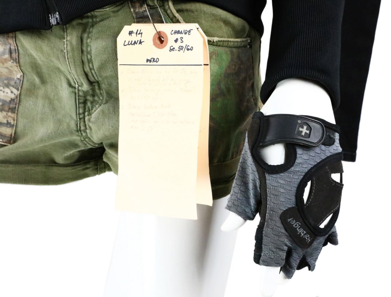 Ronda Rousey's "Expendables 3" Luna Costume From Old Hangar & Cargo Hold Sequences W/Production Hold Tags & COA - This costume was worn by actress and mixed martial arts fighter Ronda Rousey, during the filming of the 2014 American ensemble action film, "The Expendables 3". This costume was worn by Ronda Rousey as she portrayed the character "Luna" during the old hangar and cargo hold sequences. This costume is comprised of an off-white sleeveless "H&M" t-shirt marked "Luna", olive drab H&M Divided shorts with camouflage pockets marked "Luna", black H&M Sport zip-top, pair of Harbinger fingerless gloves and a pair of black leather Palladium combat-style boots with long gray socks. Also included with the costume is a pair of black Zara denim jeans worn by Luna during the scene in the cargo hold of the airplane. The lot will also be accompanied by two production hold tags with various handwritten information regarding the costume changes. The lot will also include a certificate of authenticity. This costume was previously auction provenance, and will be accompanied by the previous auction lot tag. Ronda Rousey (born February 1, 1987) is an American professional wrestler, actress, and former mixed martial artist and judoka. She was the first American woman to earn an Olympic medal in judo (bronze), which she won at the 2008 Summer Olympics in Beijing, and she is the former UFC Women's Bantamweight Champion, as well as the last Strikeforce Women's Bantamweight Champion. In 2015, voters in an online ESPN poll selected Rousey as the Best Female Athlete Ever, and that year she was also the third most searched person on Google. As of January 2017, Rousey is ranked the #4 female bantamweight fighter in the world according to the UFC.