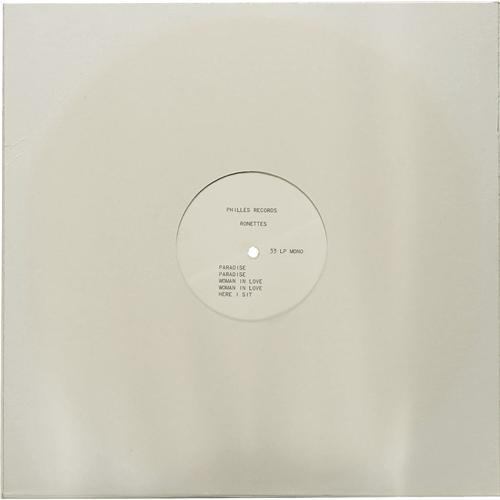 <B>Ronettes Acetate 12" Mono LP Philles Records (1965).</B></I> This one-sided five-track acetate includes two takes each of "Paradise" and "Woman In Love", plus "Here I Sit". Condition: VG-EX 6. <I>From the GRT Collection</B></I>
