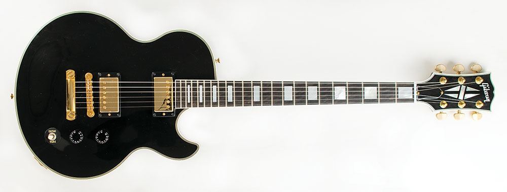 Gorgeous limited edition Ronnie Wood L5S Gibson Custom Telecaster-style electric guitar, numbered 43/50, signed on the back of the headstock in silver ink, "Ronnie Wood, 43." Includes the original certificate of authenticity from Gibson Custom, bearing facsimile signatures of Wood and Rick Gembar, the general manager and senior vice president at the Gibson Custom Shop. In fine condition. Accompanied by a Gibson Gold Warranty pre-pack checklist inspected for "Model No. Ronnie Wood L5S" and "Serial No. #43," a 55-point Guitar Evaluation card from Sweetwater, and a handsome Gibson Custom hardshell carrying case.