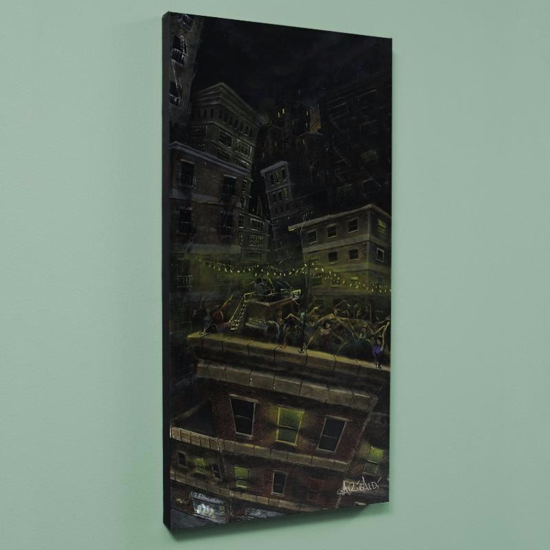 Combining his passions for music and art, David Garibaldi creates visual poetry. "Roof Party" is a limited edition giclee on stretched canvas, AP numbered and bearing the artist's authorized signature. This piece is gallery wrapped and ready to hang. Includes Certificate of Authenticity! Measures approx. 24" x 48" (image). Retail Price $800.00. PRICE INCUDES FREE SHIPPING IN THE U.S. - SHIPPING WILL BE ADDED TO YOUR INVOICE FOR ALL BUYERS OUTSIDE OF THE U.S.