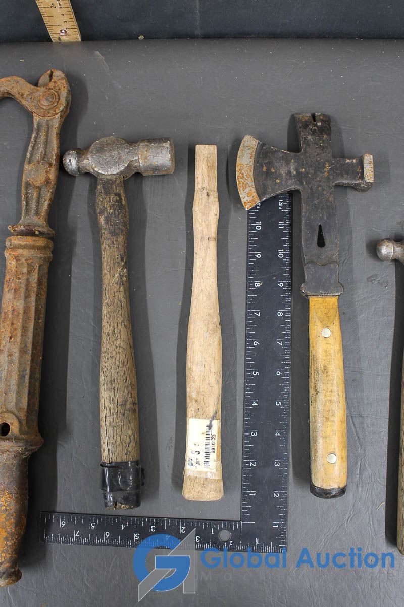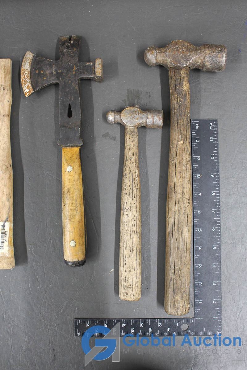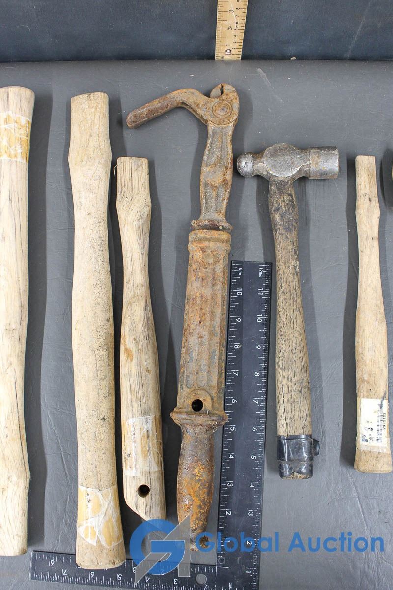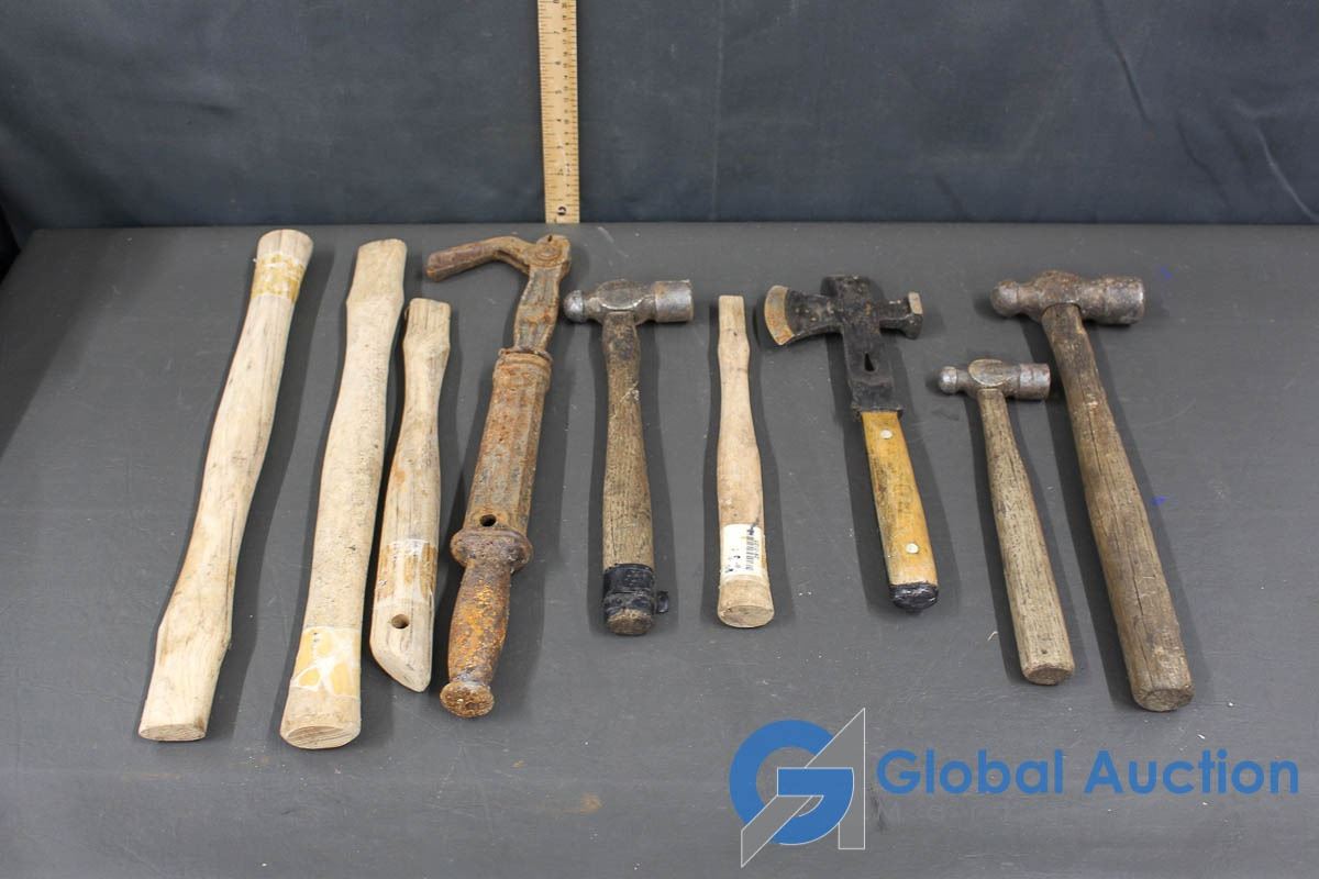Roofers Hammer, (3) Ball Peen Hammers, Wooden Hammer Handles & Nail Puller