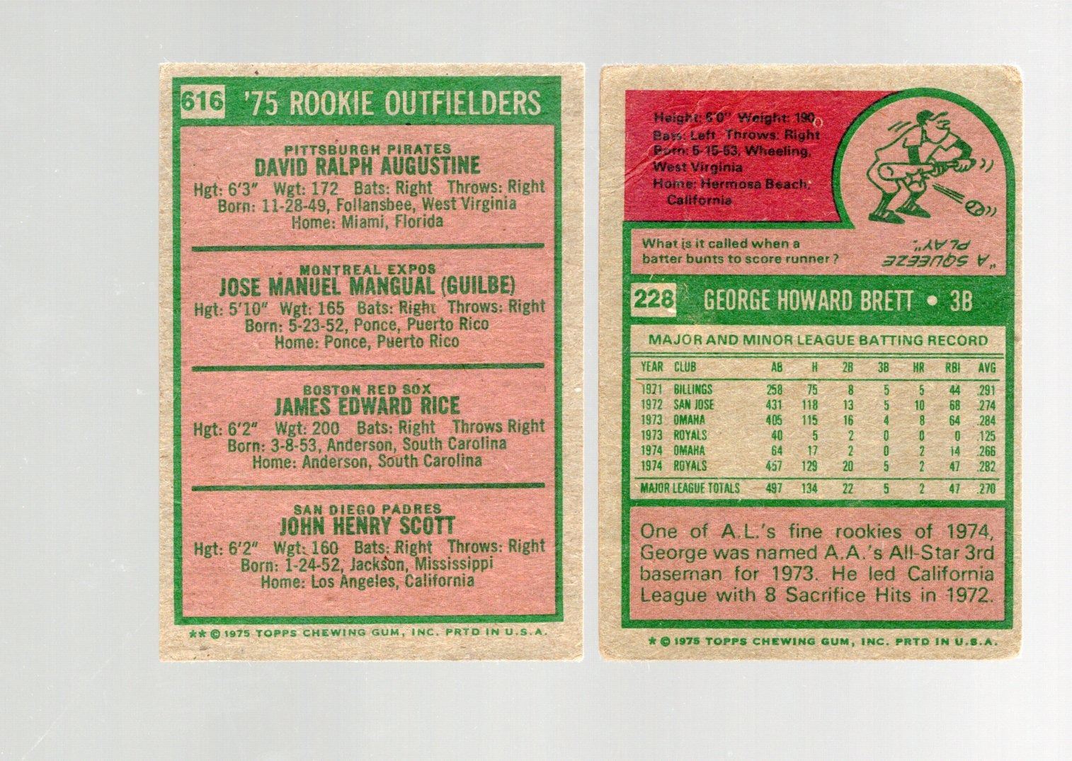 Rookie Cards George Brett & Jim Rice - Brett not in great condition & Rice in good condition.