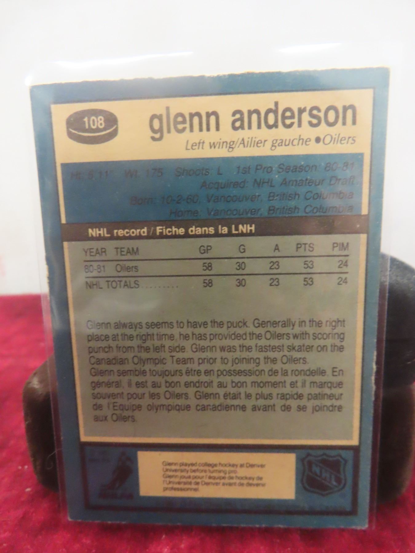 Rookie Glenn Anderson Edmonton Oilers Card
