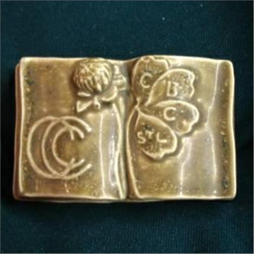 Rookwood Commercial ware Book paperweight made for the 1924 reunion of the Commercial Clubs of Boston, CHicago, Cincinnati and St. Louis. The 3/4" x 3 1/2" figure isuncrazed.